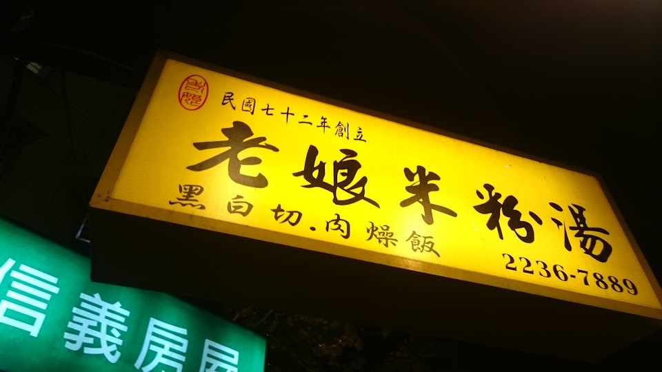 木柵辛亥路口附近的米粉湯店,晚餐時間生意非常好,人潮絡繹不絕,而且牆上有很多名人藝人來訪過,是很有名氣的店。