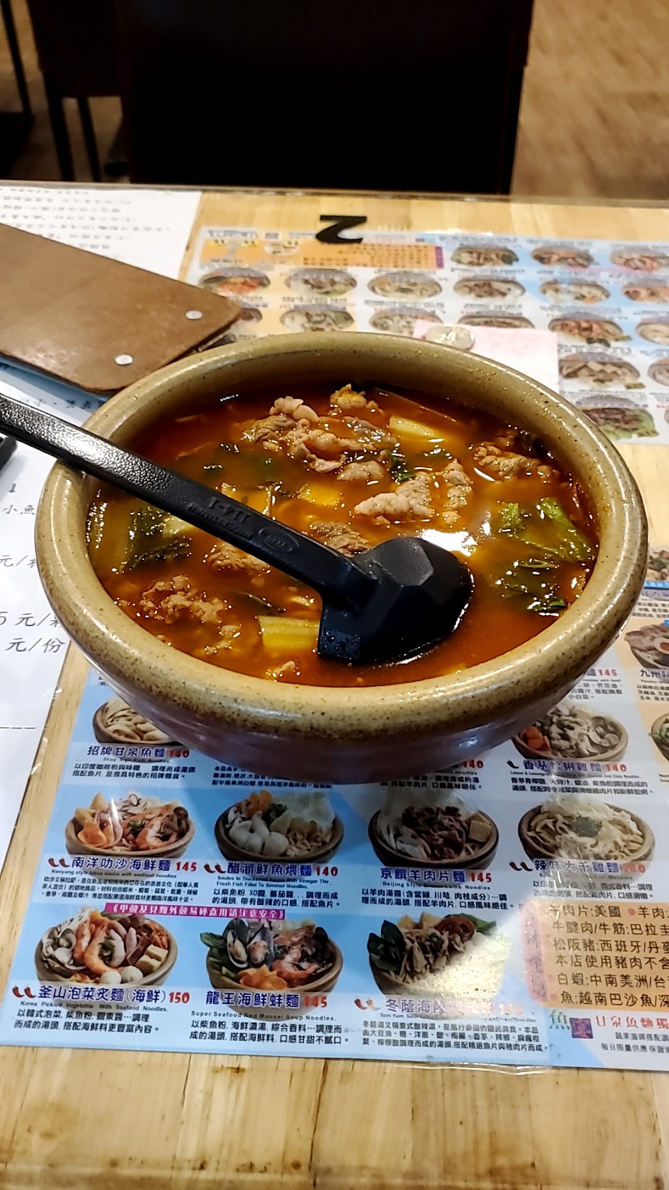 我在政大周邊最喜歡的一家麵店,湯頭口味多樣、麵品中的配料也豐富,還可以免費加麵,讓人營養均衡又吃得飽足。 個人最喜歡的口味有 招牌甘泉魚、醋溜魚片、輕檸牛肉、東北酸菜白肉、大千辣雞。 P.S照片裡的是肉骨茶,雖不是我偏好的口味,但是可以看見裡面的青菜、肉片配料十分充足