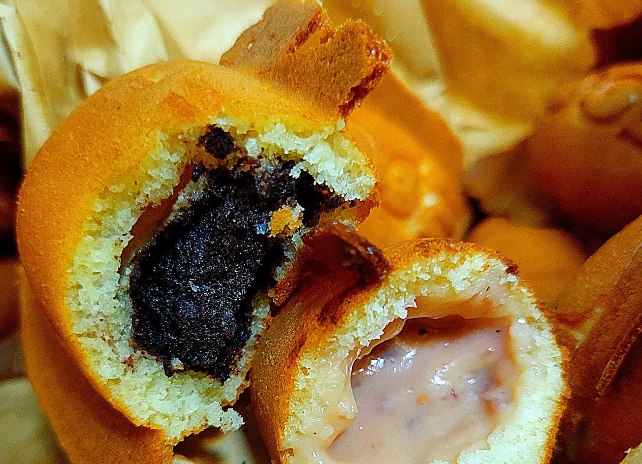 雞蛋糕外酥脆、內軟Q,餡料香甜不膩口