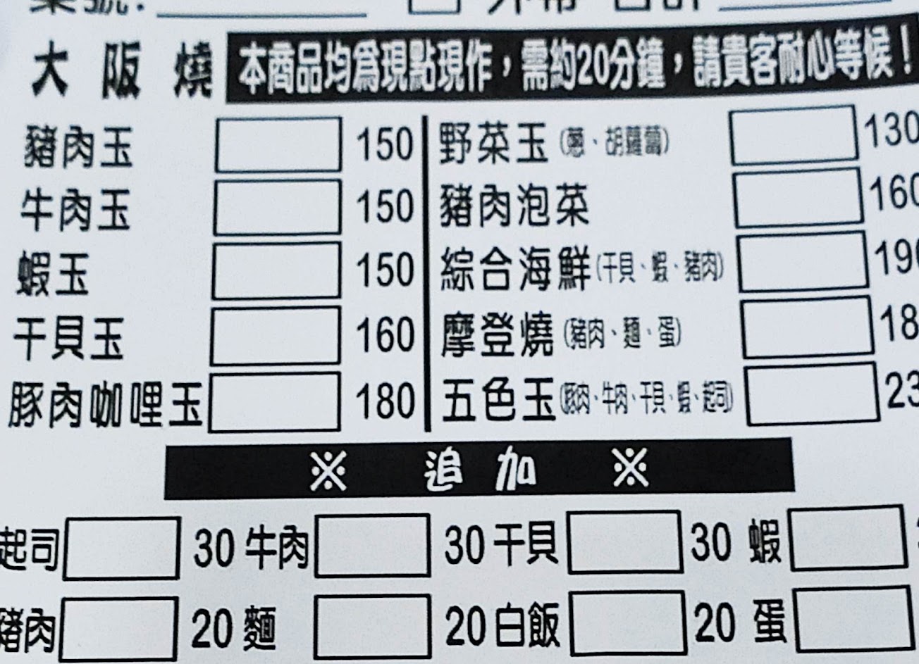 ?#豬肉玉大阪燒 120元