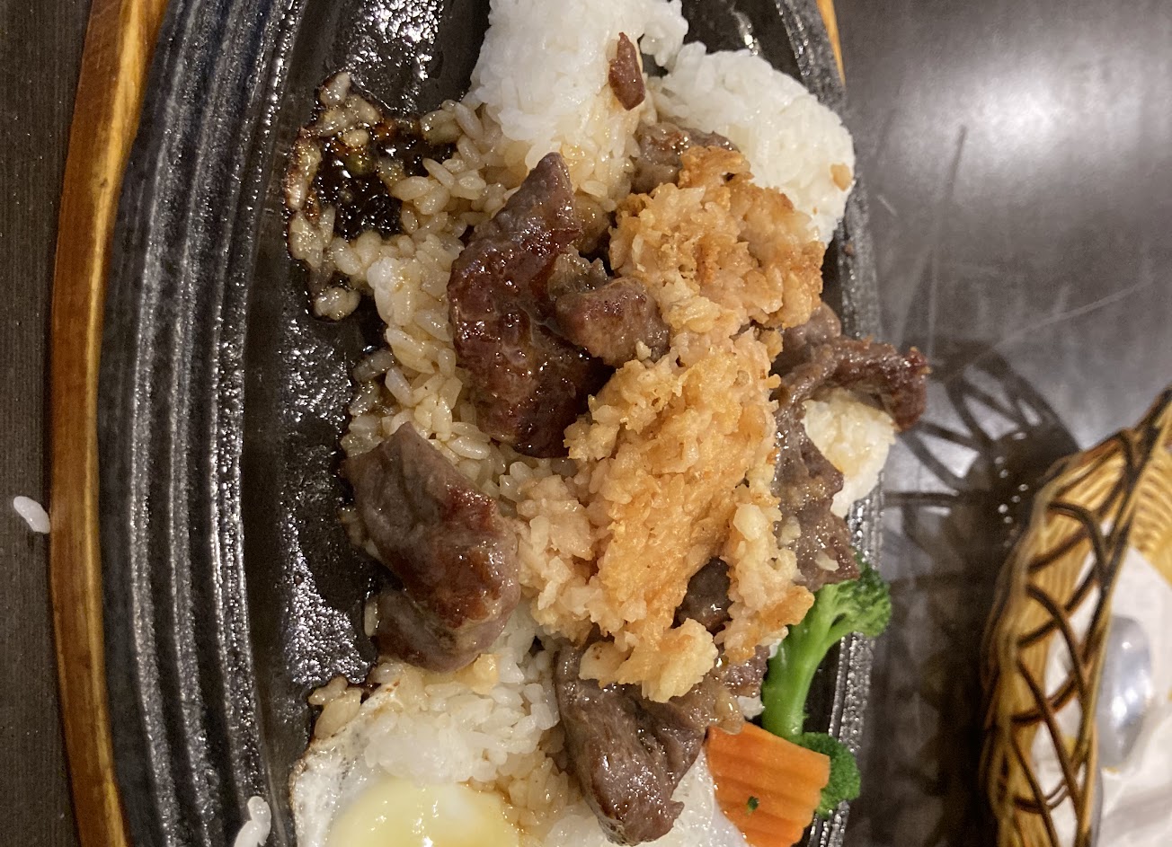 Cp值很高,點的160沙朗牛肉質不錯!鐵板黑胡椒醬配上白飯超美味!