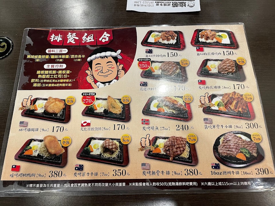 乾淨整齊、不同一般平價牛排,沙朗牛排有炭香味(角塊牛排沒有),整體都不錯,比較不好停車。