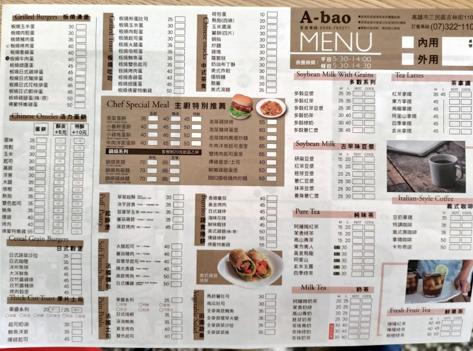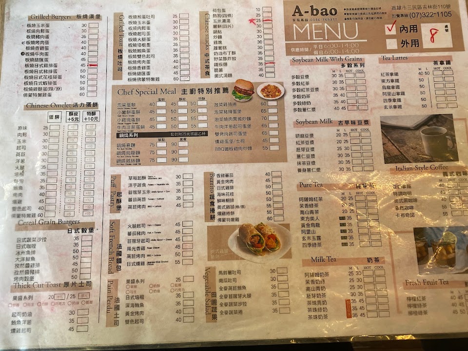 2024最新在地推薦餐廳的菜單_A-bao house 阿寶 早午餐 辰食館 高醫店的菜單、圖片
