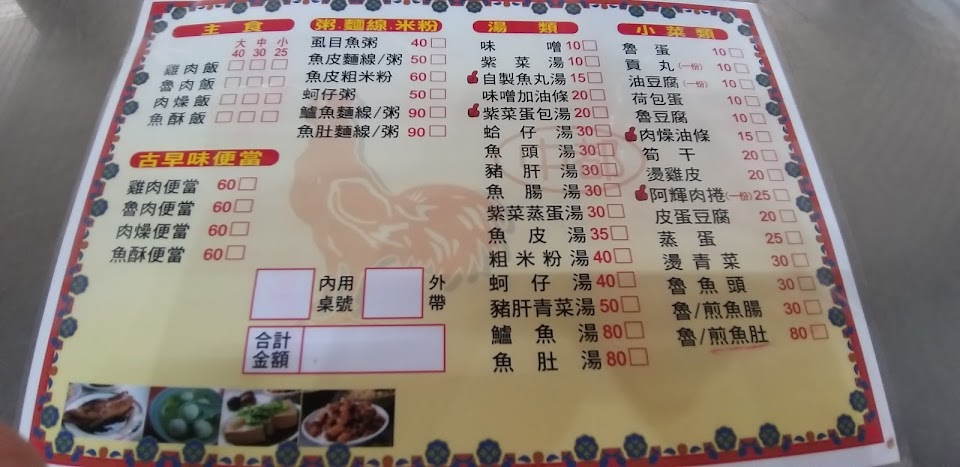 中都雞肉飯有四大天王,雞肉飯、肉燥飯、魯肉飯以及魚酥飯,個個都很利害!他們菜單上主要分類為主食、古早味便當、粥.麵線.米粉類、湯類及小菜類等等。