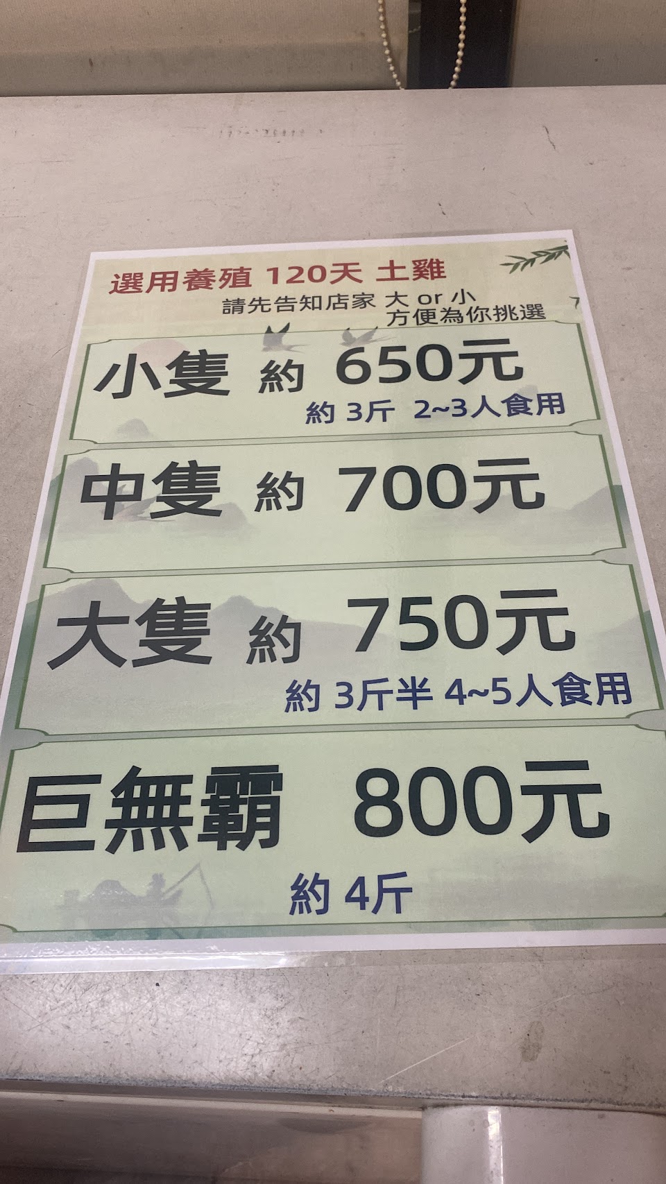 比不上關子嶺的桶子雞,感覺就是一般的烤雞,不如去好市多買還不用花到600元~