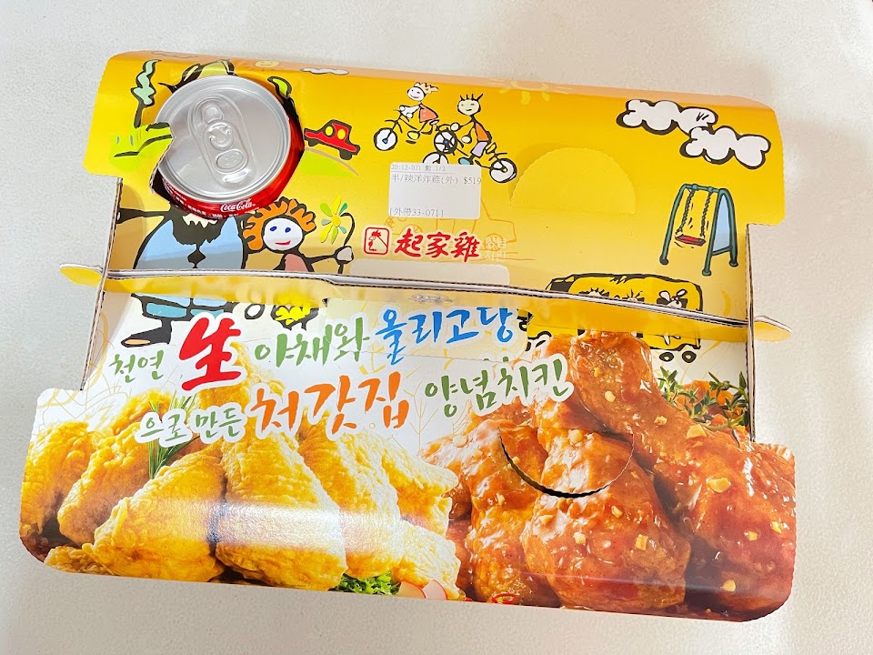 還沒打開外盒炸雞的香味四溢,我們點了半半炸雞,口味分別是原味&洋釀