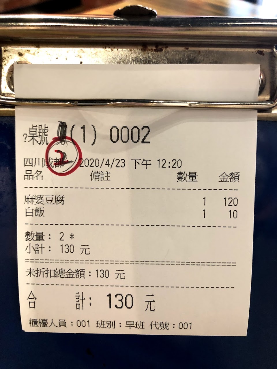餐點:3