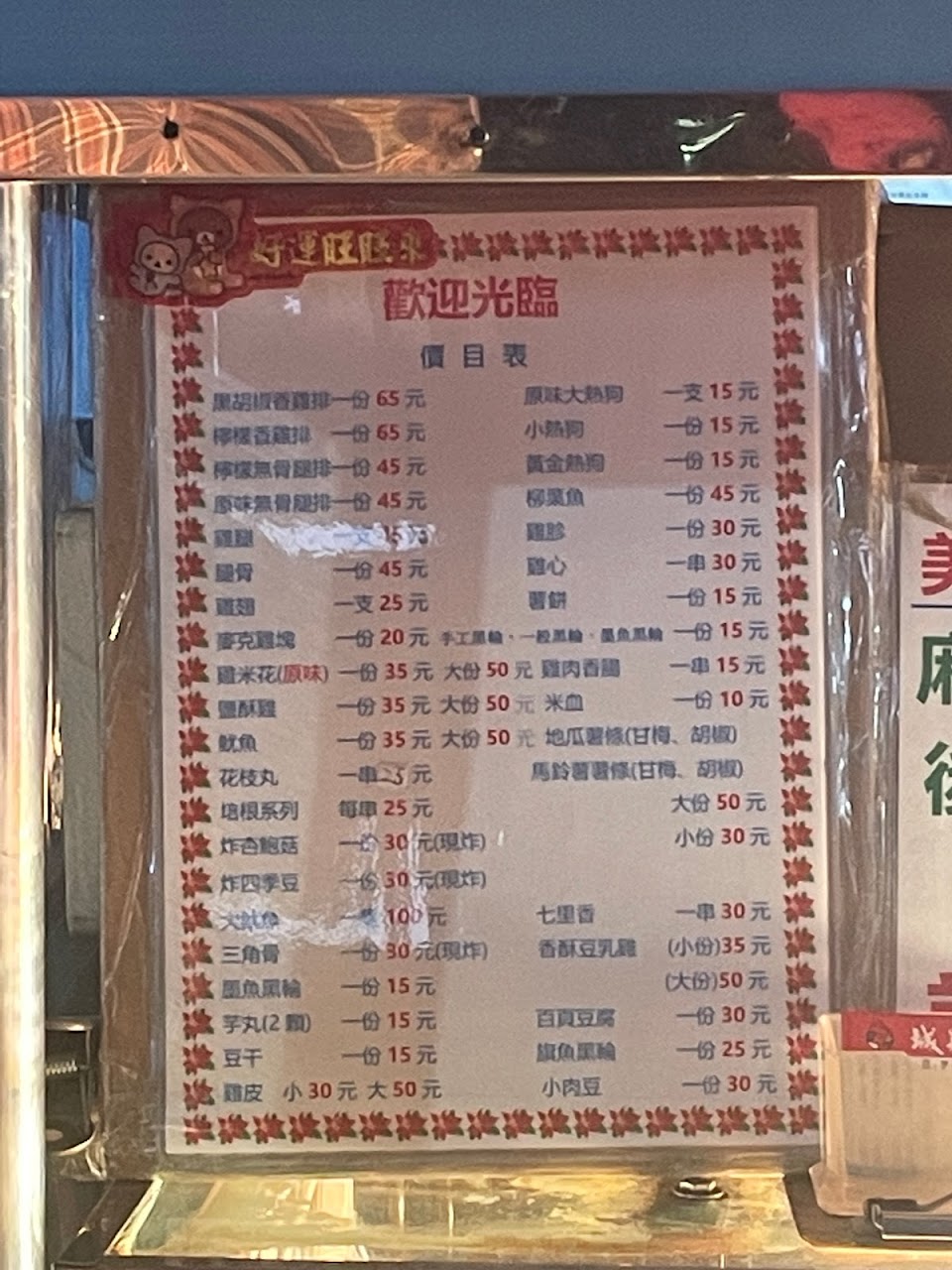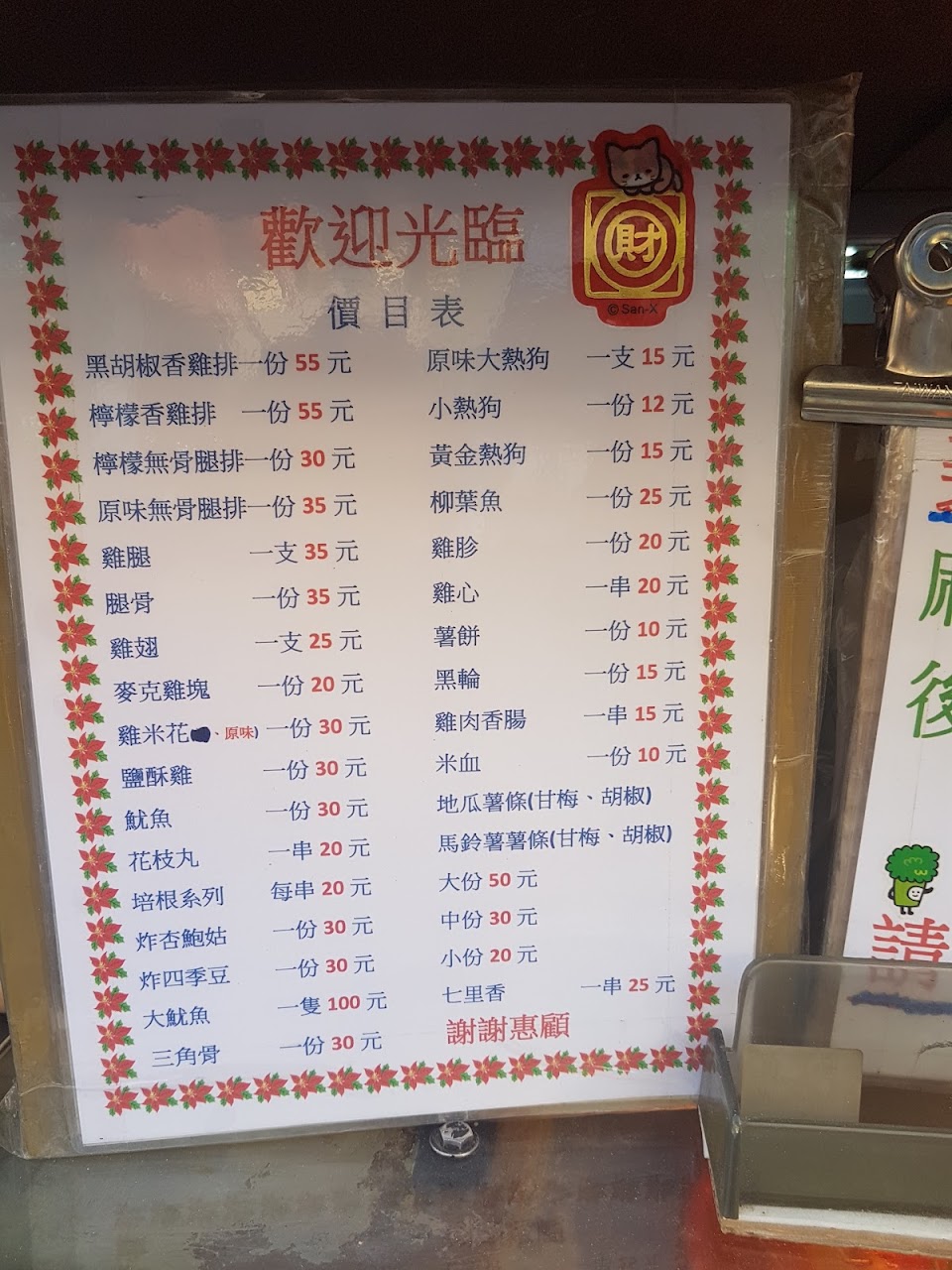 附上最新菜單
