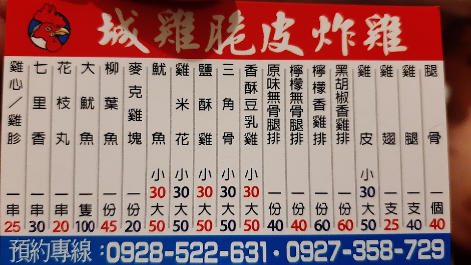 2024最新在地推薦餐廳的菜單_城雞炸雞店的菜單、圖片