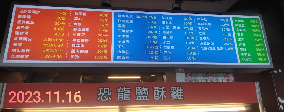 2024最新在地推薦餐廳的菜單_恐龍鹽酥雞 (每週三公休)的菜單、圖片