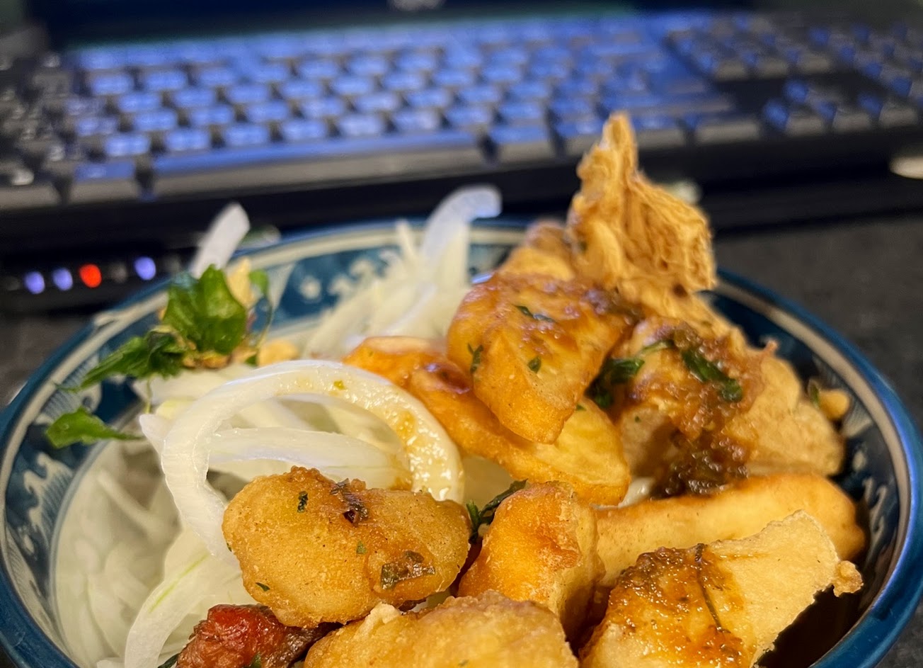 剛才去買,臨時找的一間鹽酥雞店。食材的味道是有一點明顯,感覺冰磚的冷度不夠。。拿起夾子籃子時看見一隻小蟑螂爬過,我順手用手指把小蟑螂彈走。接著要夾菜時,看到雞蛋豆腐盒子上也有小蟑螂在爬….我就不行了?掉頭就走,衛生條件要再加強。