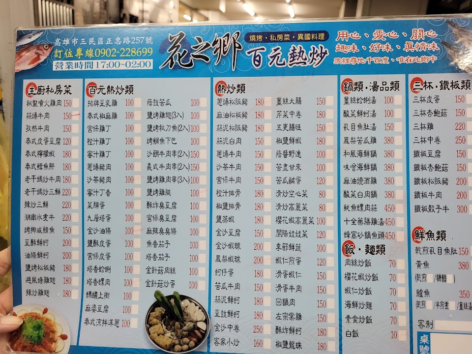 2024最新在地推薦餐廳的菜單_花之鄉百元熱炒的菜單、圖片