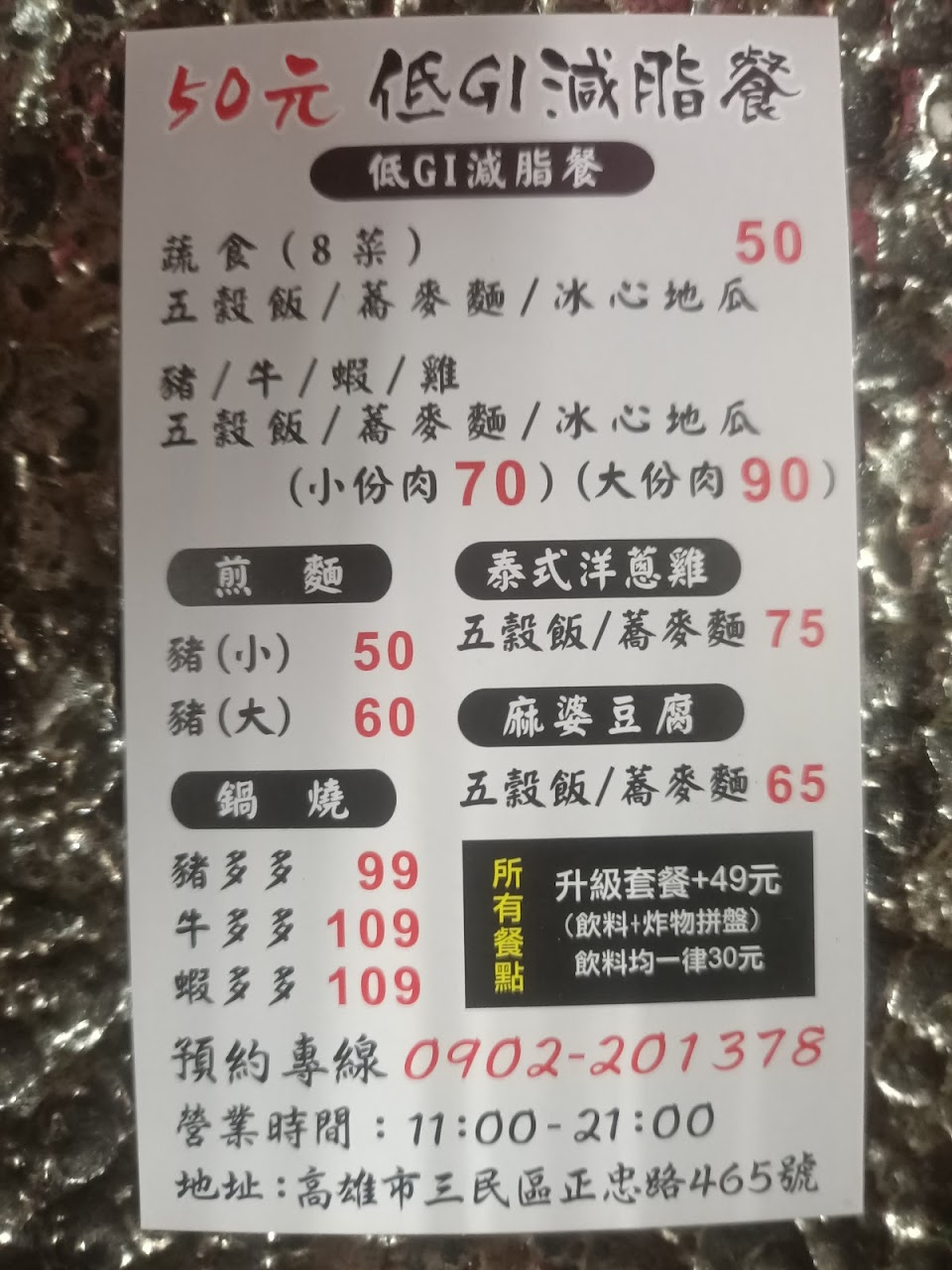 2024最新在地推薦餐廳的菜單_50元低GI減脂餐(正忠店)的菜單、圖片