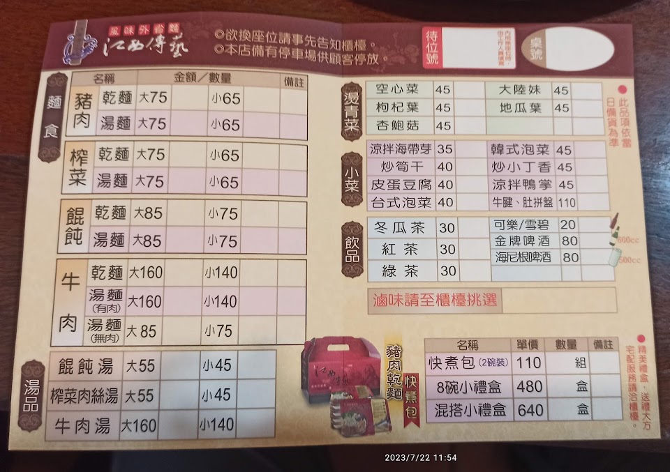 設有停車場真是方便顧客不少,否則難以用餐,雖然店內桌椅不少但還是擁擠,因為吃飯的人進出川流不息,排隊點餐的人很多,隊伍又長感覺空氣都熱,好在服務人員很有經驗,適時安排桌次位置,麵點小菜滷味多可供選擇,味道可口感覺不錯。