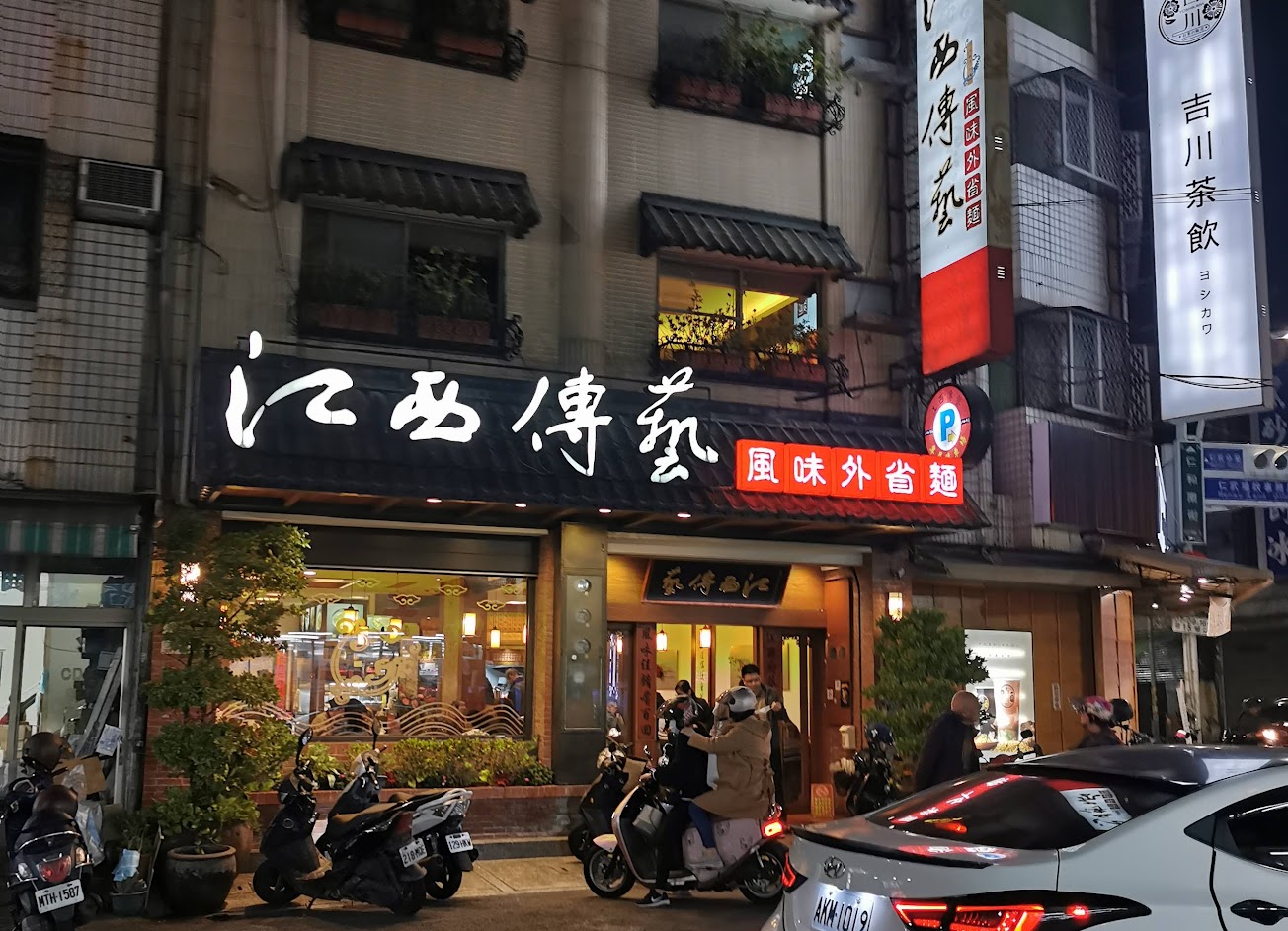 連鎖麵店,偏高單價,滷味小菜多,附近只有它有停車場,味道也不賴,但生意太好要排隊,中午吃飯人少需要併桌