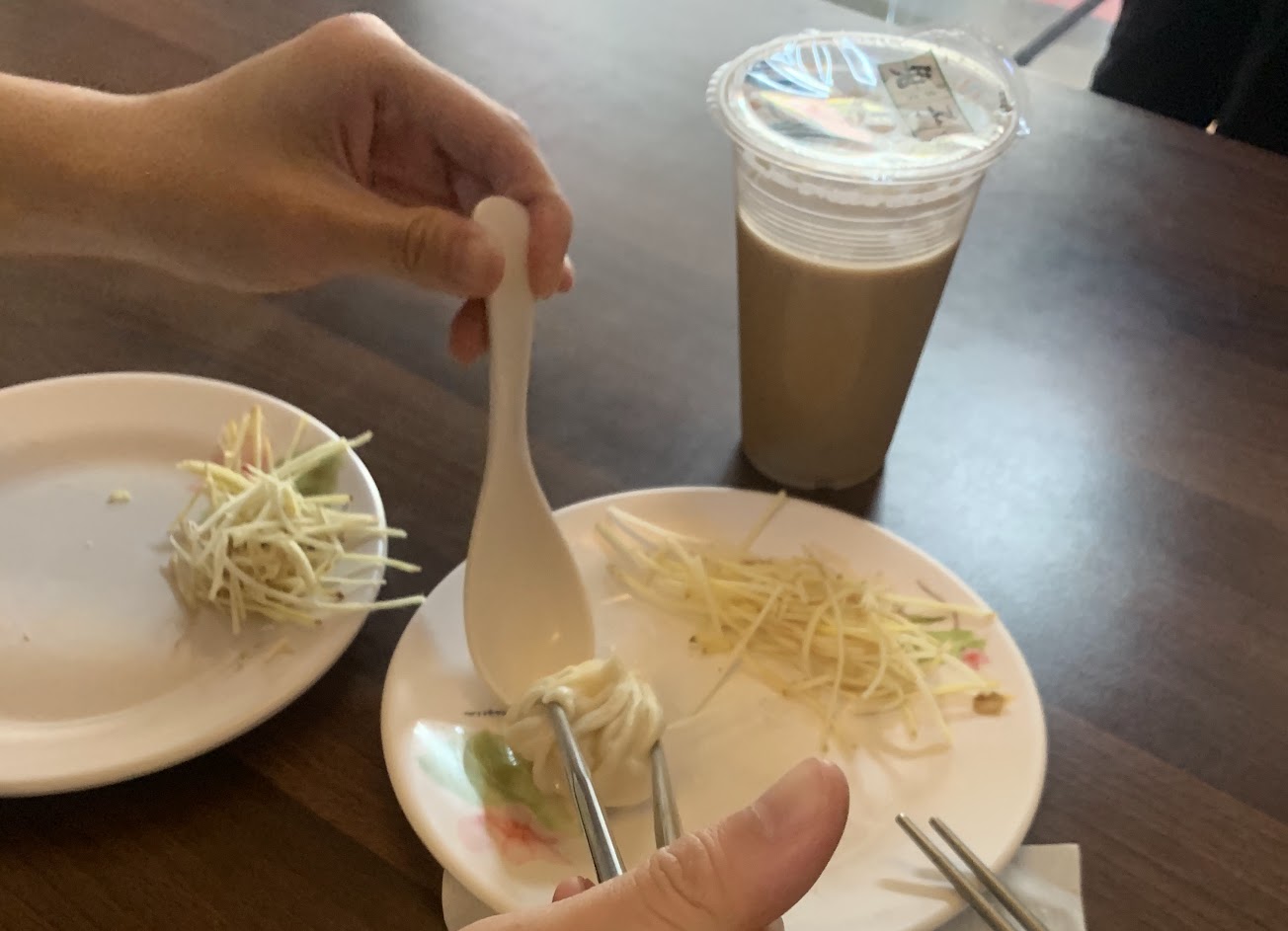 好吃哦,一早就開了,湯包還是現場熱熱吃最讚,今天點了四籠,有一些上桌時皮都破了,沒湯汁,中間折的部分之皮稍硬。整體還算不錯,有湯汁的話都蠻鮮甜的,薑絲是附在湯包一起上桌,不是讓客人自己夾取,沾醬有店家自製有辣油的,也有一般醬油