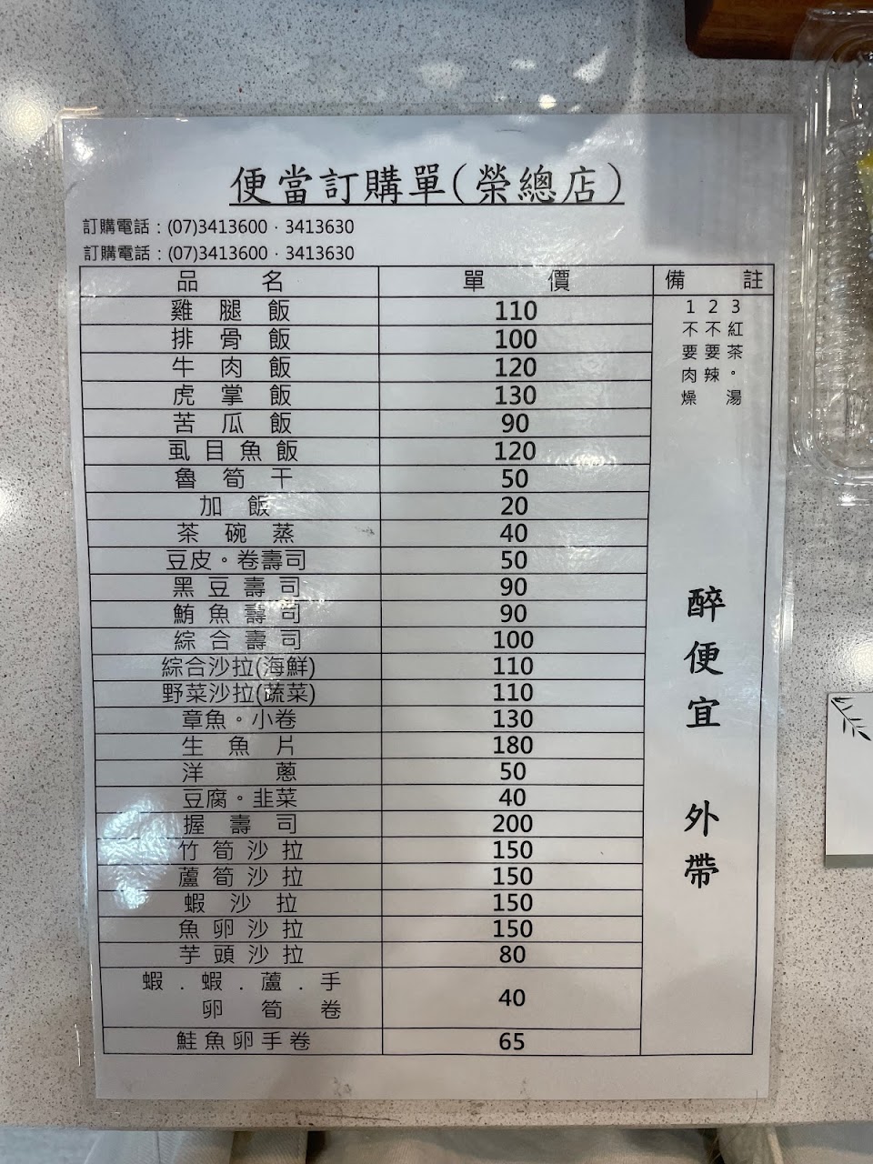 與本店的經營模式不一樣!採外帶包裝模式!食材的新鮮度可信任,口感還是有差差…!!且外裝讓人感覺(盤裝(盤飾)視覺)…所謂的“色香味”大打折扣…!!另外,整體動線是以外食為主…!室內排氣不是很理想…!老闆還親臨坐陣!還是推薦您此處值得品嚐…!