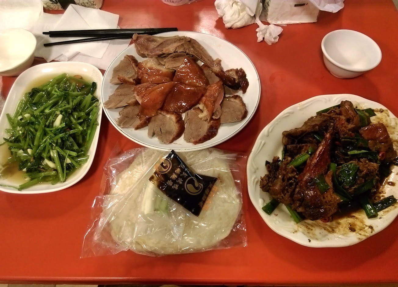 現場吃真的鮮嫩又多汁,原以為烤鴨就很好吃了,沒想到連炒青菜.米血都一樣美味,更讓我驚艷的是燒肉,皮很脆,非常好吃,朋友們讚不絕口