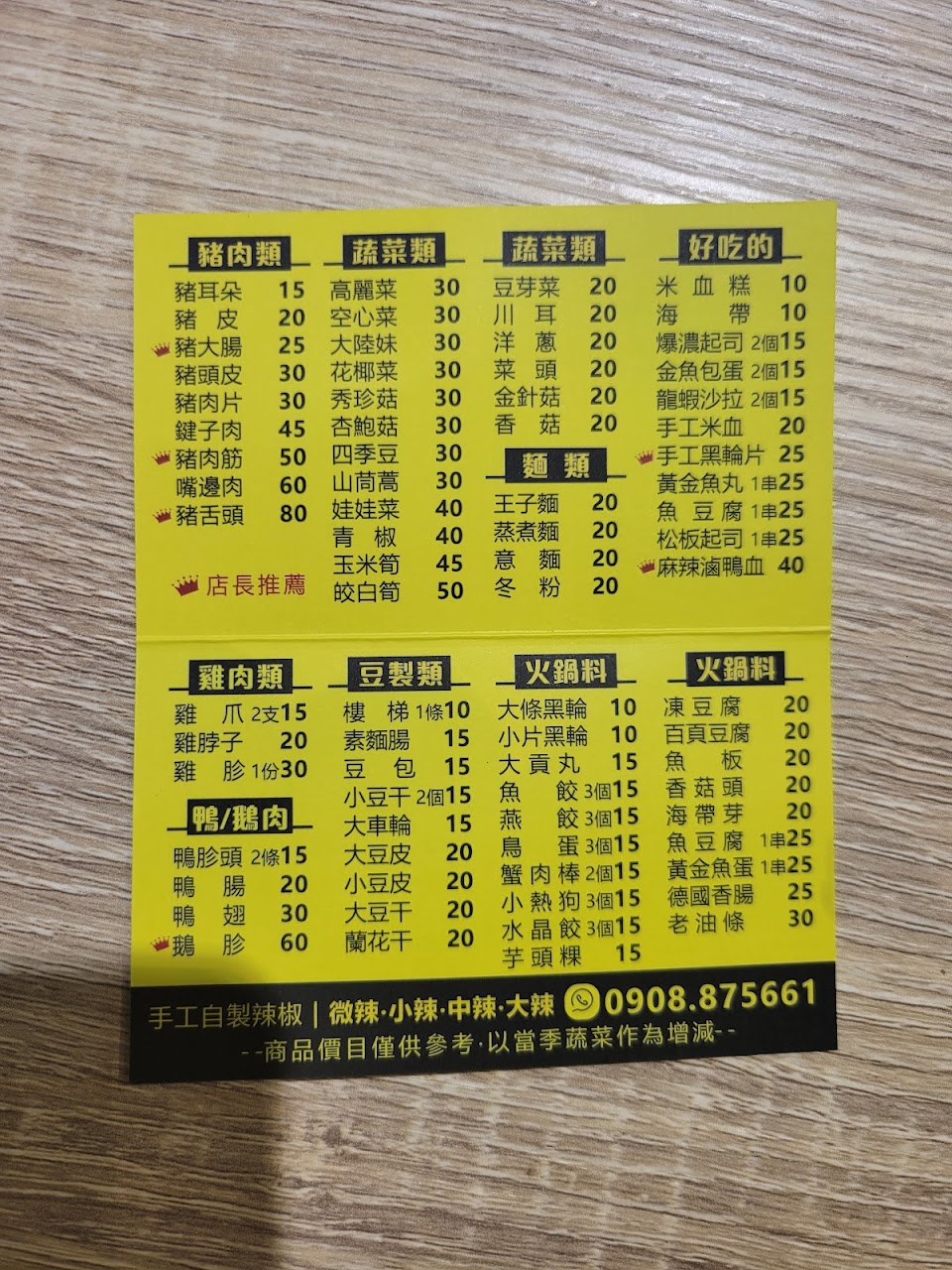 2024最新在地推薦餐廳的菜單_辣椒香辣滷味。仁武中華店的菜單、圖片