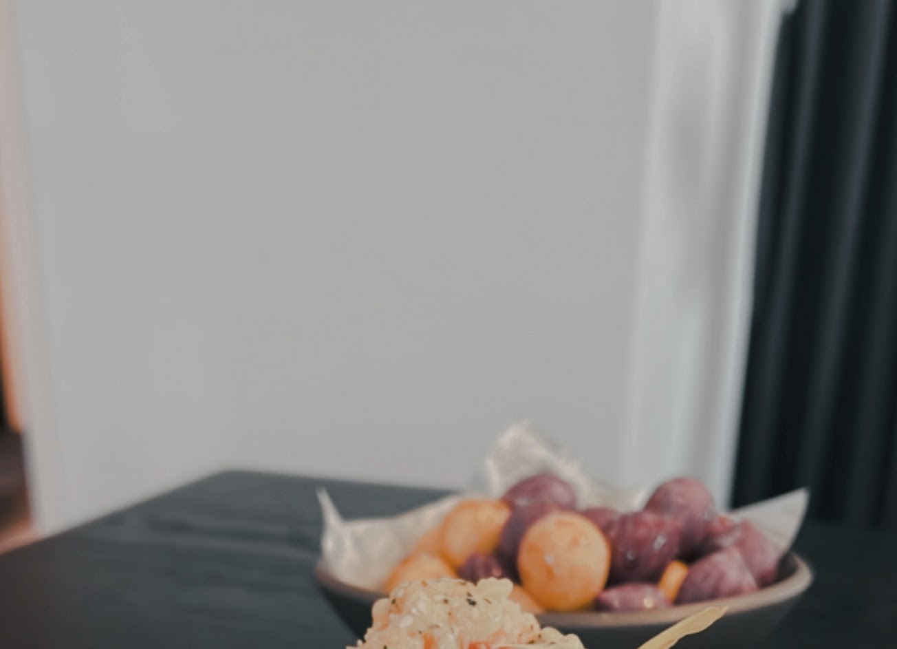 ?木炭薯條:很有創意的一道,用紫薯炸的薯條,搭配跳跳糖跟煉乳還蠻新鮮的