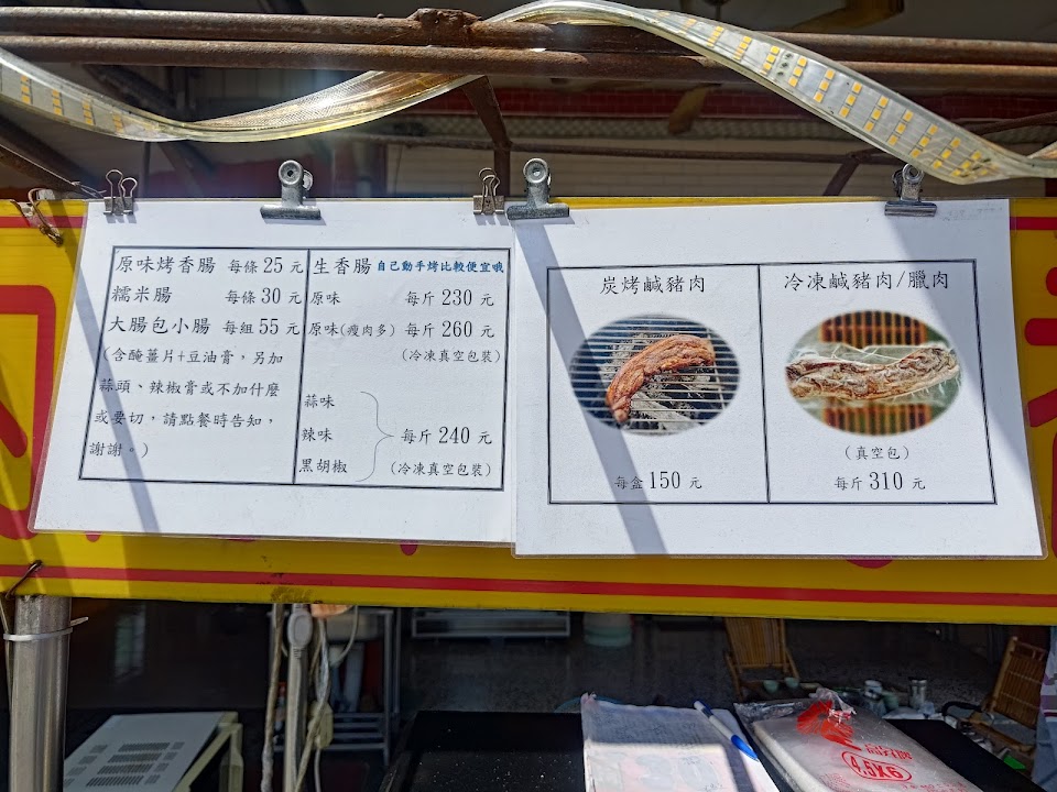 香腸肥瘦相間不會感到油膩,有豬肉的香與香腸醃製後的美味,可以現烤包糯米腸,可以外帶,可以買生的,老闆娘服務親切,值得推薦!