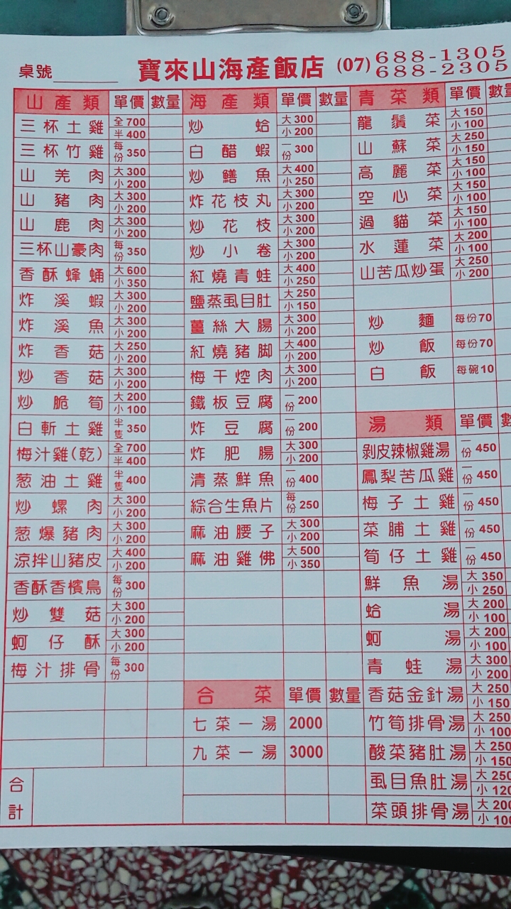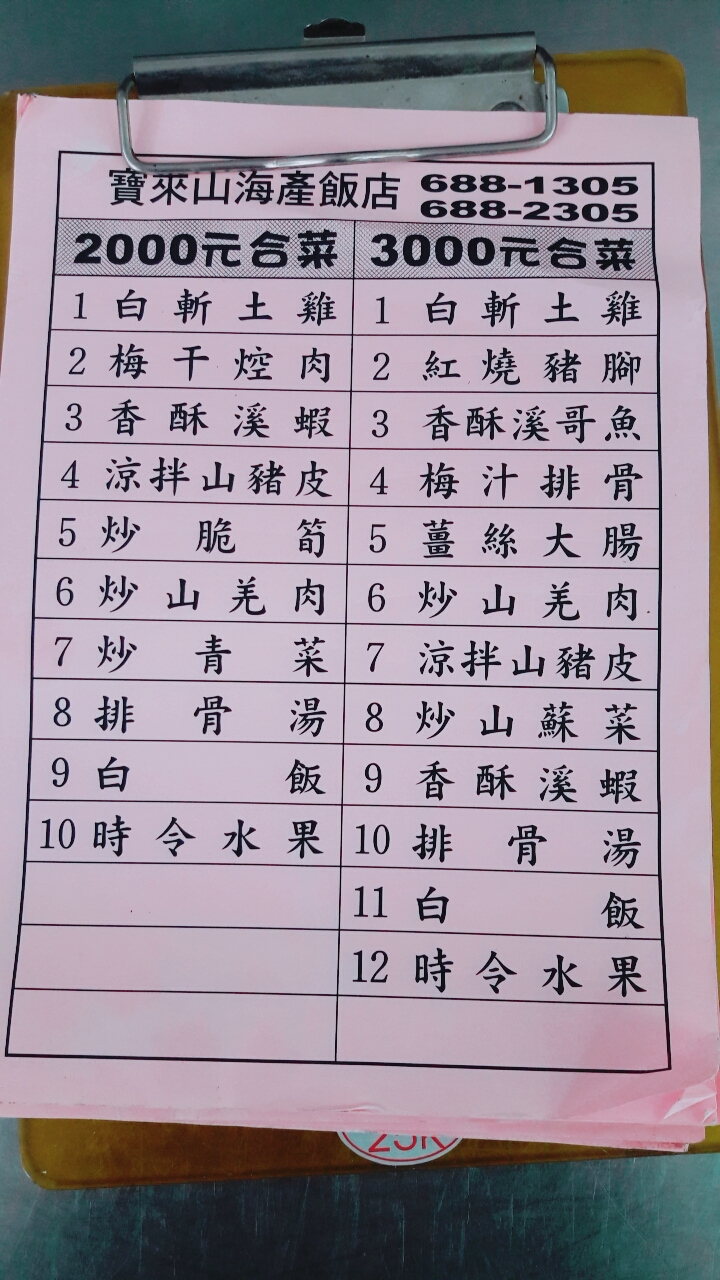 2024最新在地推薦餐廳的菜單_寶來山海產飯店的菜單、圖片