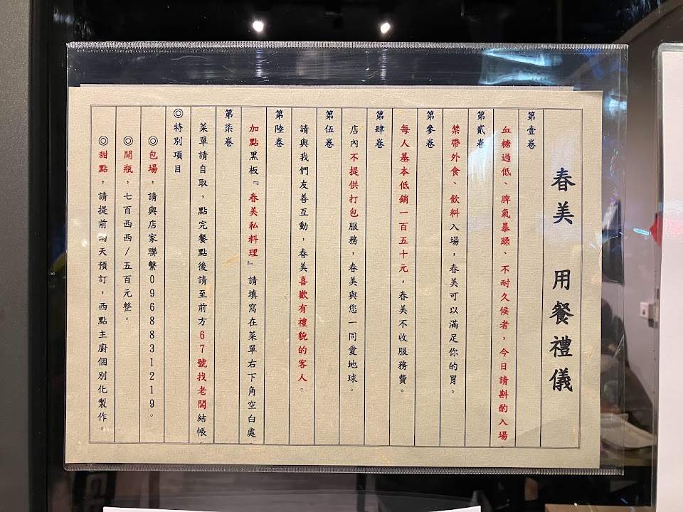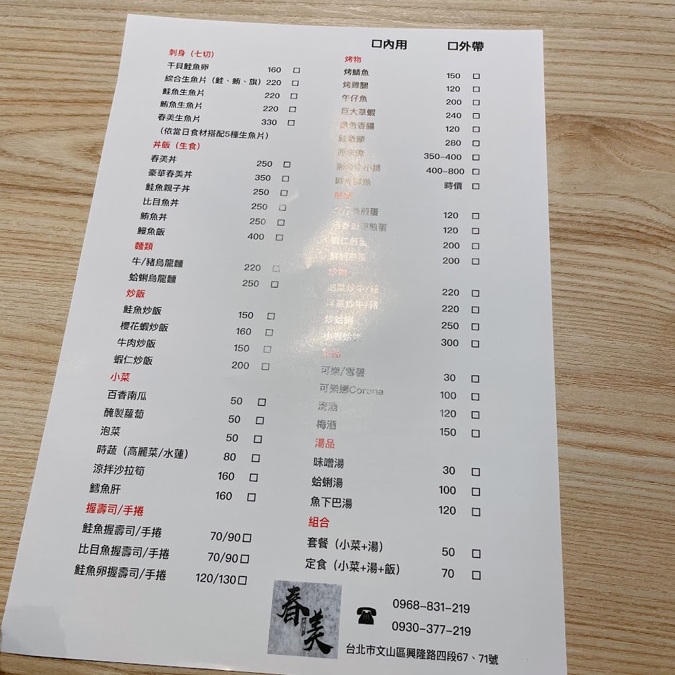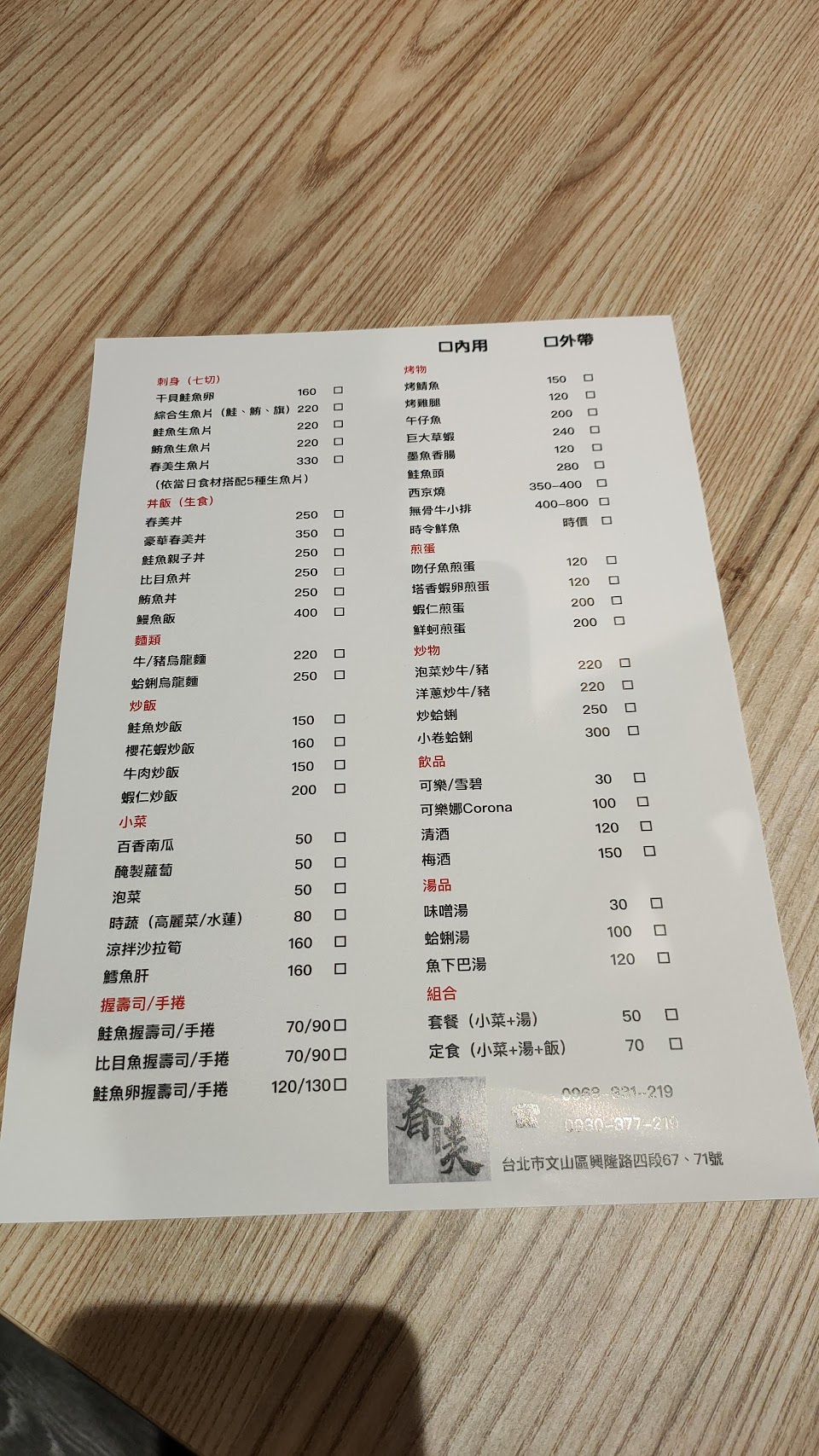 春美harumi(店裡沒接電話就店休,平均都是5:00~9:00不接受訂位?,接受提前訂餐,無菜單最低1000