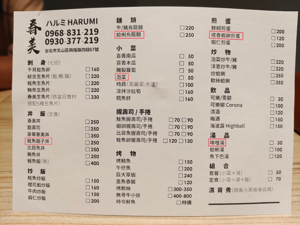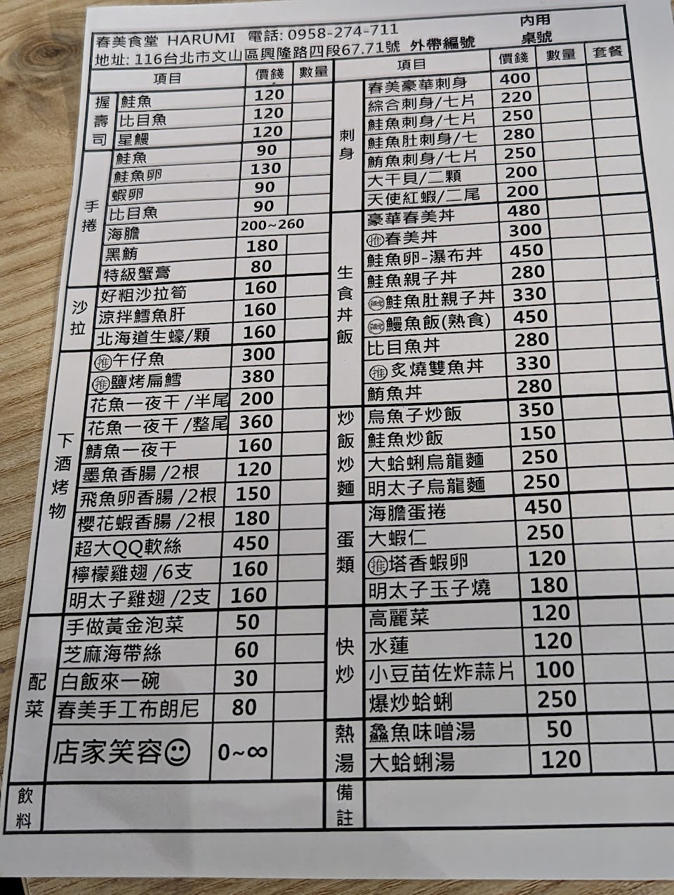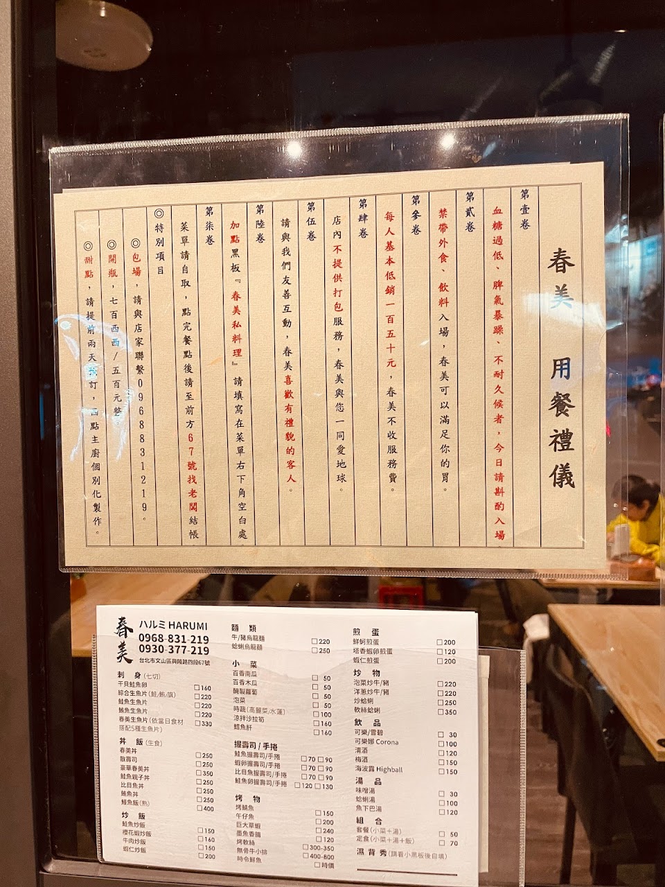 2024最新在地推薦餐廳的菜單_春美harumi(店裡沒接電話就店休,平均都是5:00~9:00不接受訂位?,接受提前訂餐,無菜單最低1000的菜單、圖片
