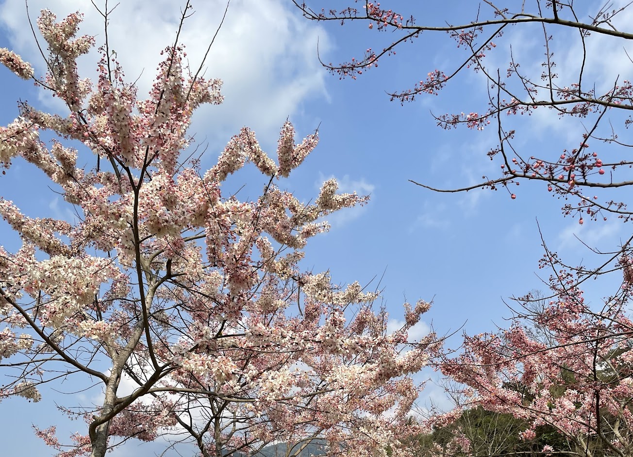 可以泡湯又可以賞花的好地方! 陣雨樹正滿開,可以拍到滿滿粉嫩的花旗木,十分浪漫!