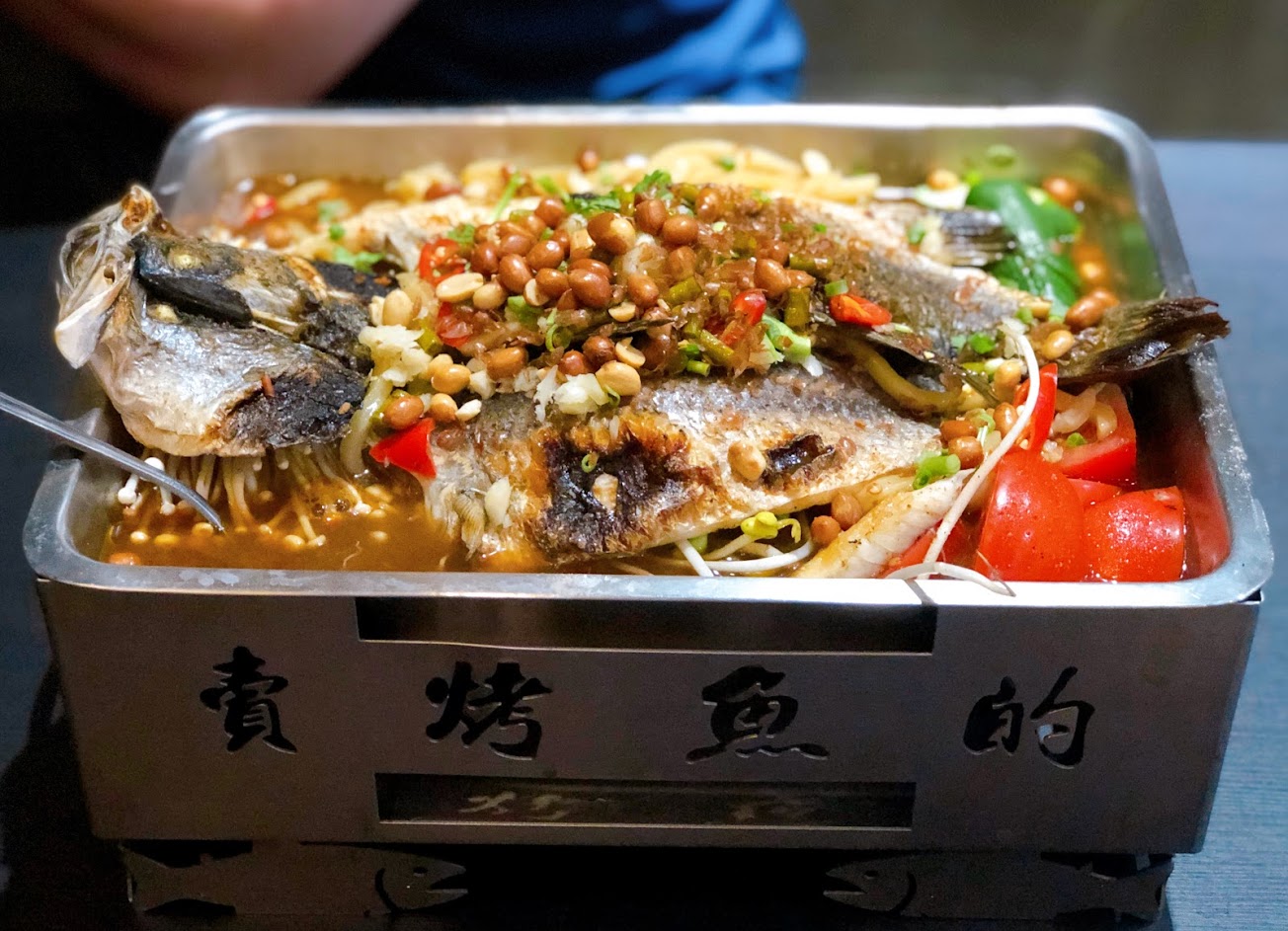 也許只是個人口味不合,但 從頭到尾都不知道自己吃了什麼 點了不辣的烤魚,完全顛覆我們的想像