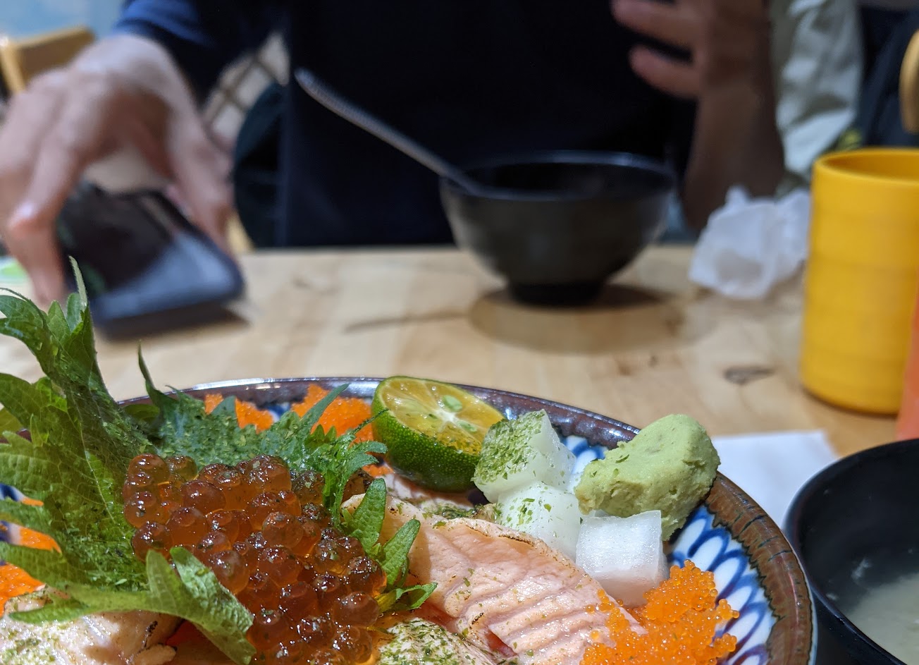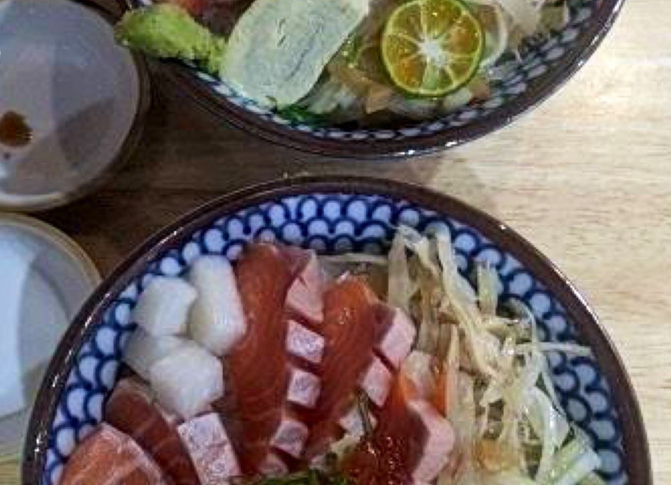 到門口看都沒人 就用自動點餐機點了二個生魚片丼飯 結果等了半小時才做好 中間一堆Uber外送員來取餐