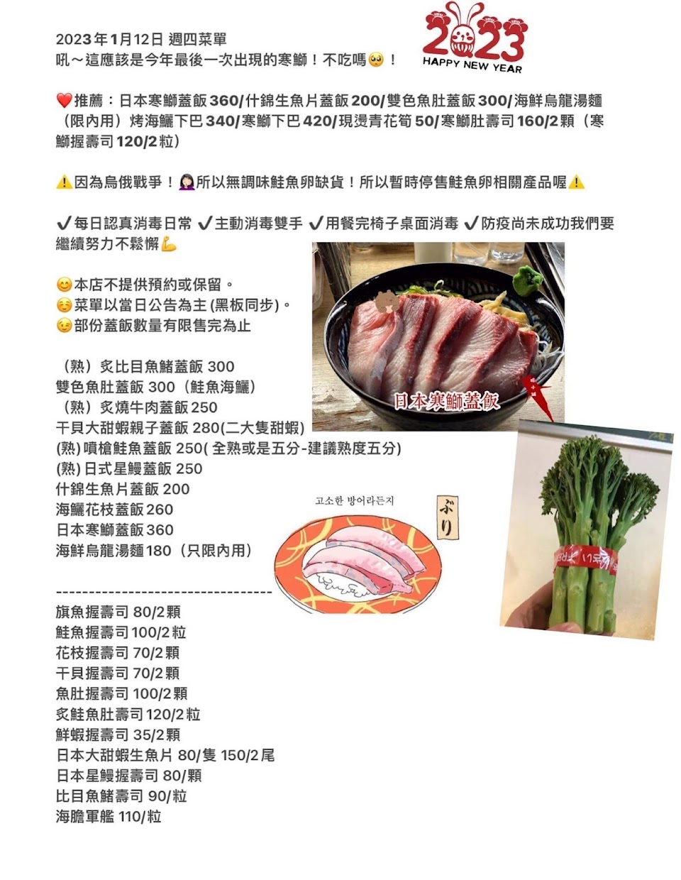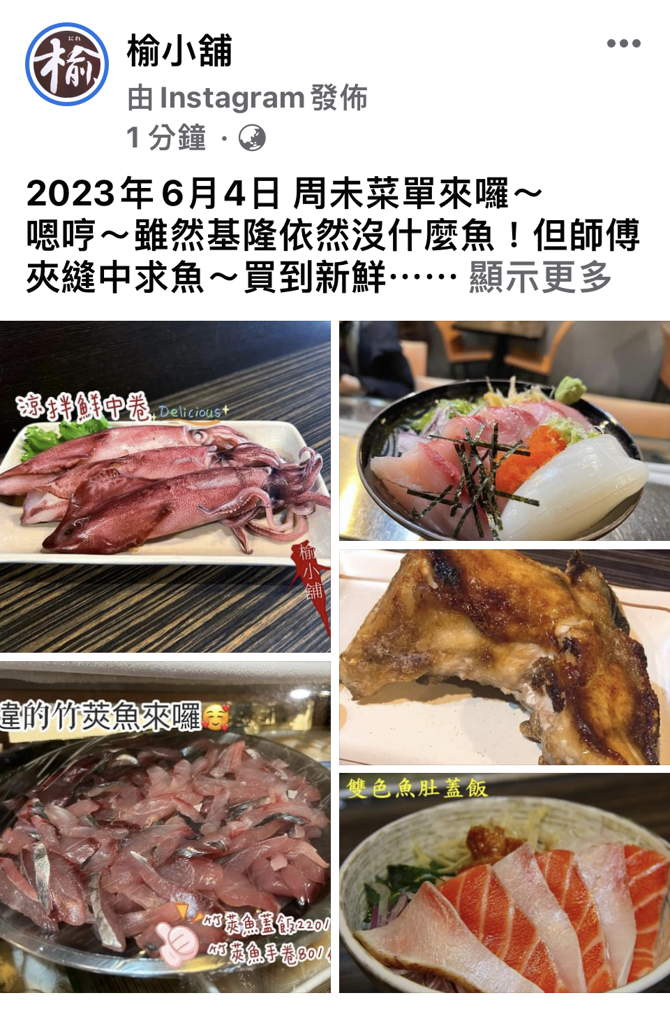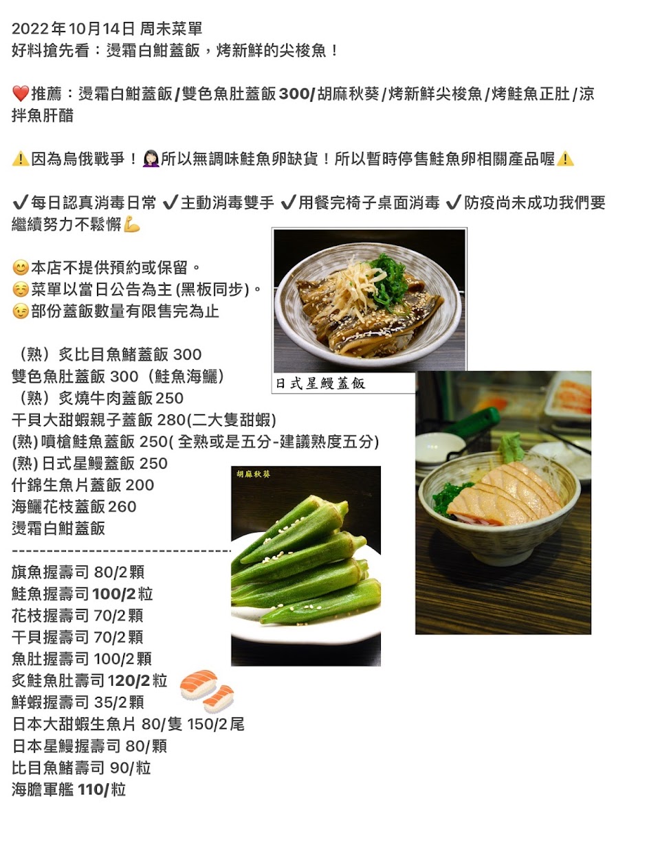 海鱺花枝蓋飯 味增湯 蝦頭 炙燒比目魚蓋飯 炙燒鮭魚明太子蓋飯 炙燒鮭魚肚握壽司 雙色魚肚蓋飯