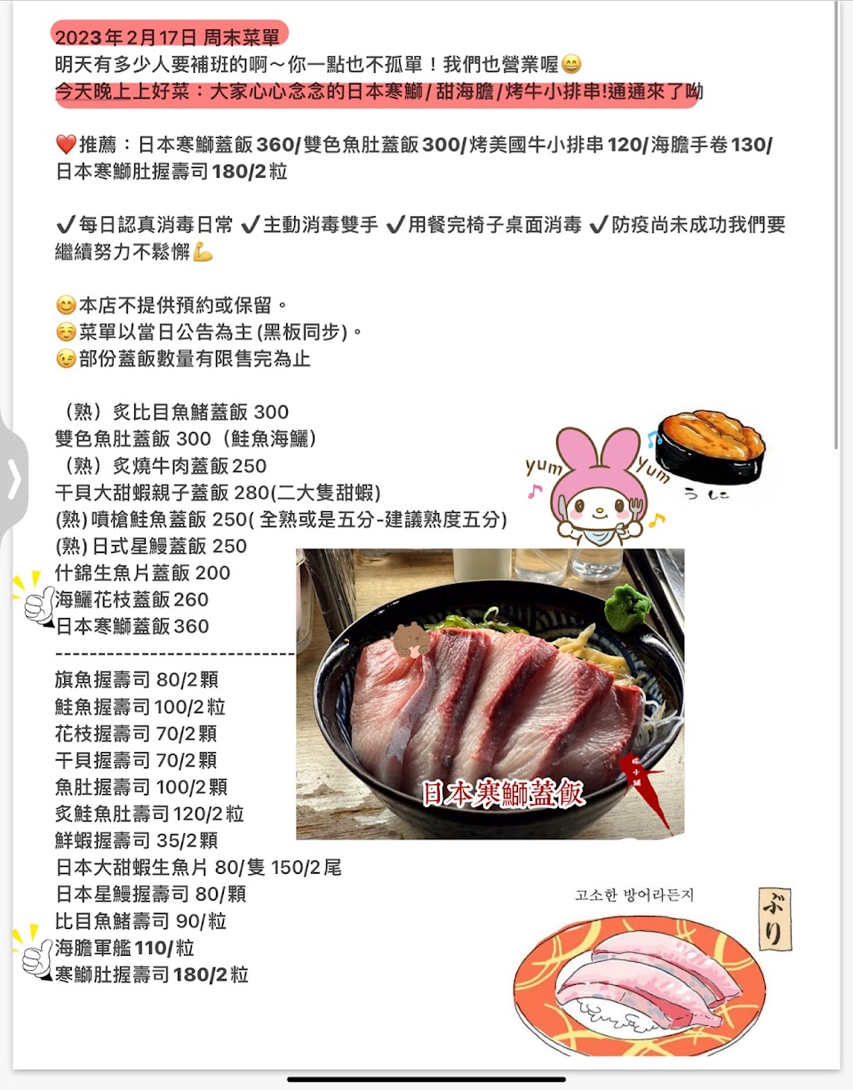 台北南區少數好吃又不貴的日式生魚片蓋飯 迄今飛漲的年代 自覺是沒漲(但被家人打臉)可去看看 3張桌 但可坐吧台