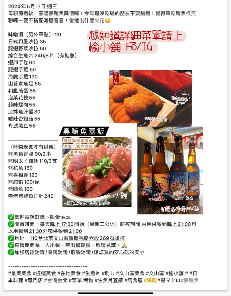 2024最新在地推薦餐廳的菜單_榆小舖的菜單、圖片