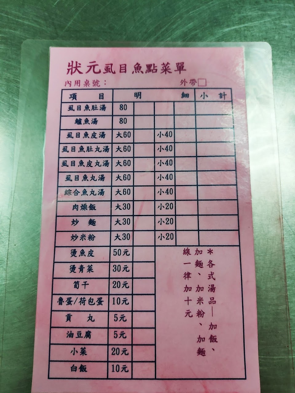2024最新在地推薦餐廳的菜單_狀元虱目魚的菜單、圖片