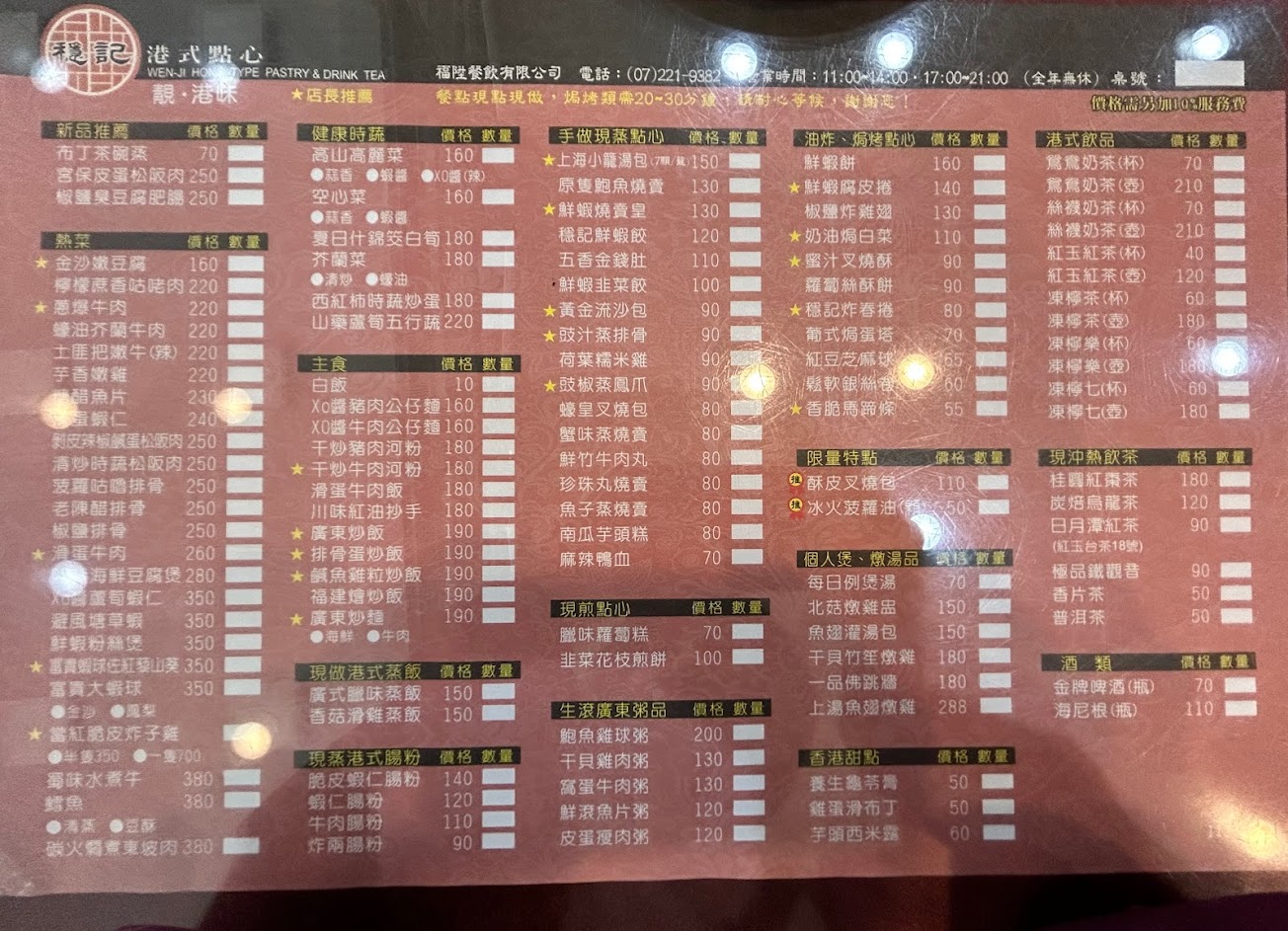 道地的港式飲茶推薦 服務 內用 餐點類型 晚餐 平均每人消費金額 $1,800-2,000