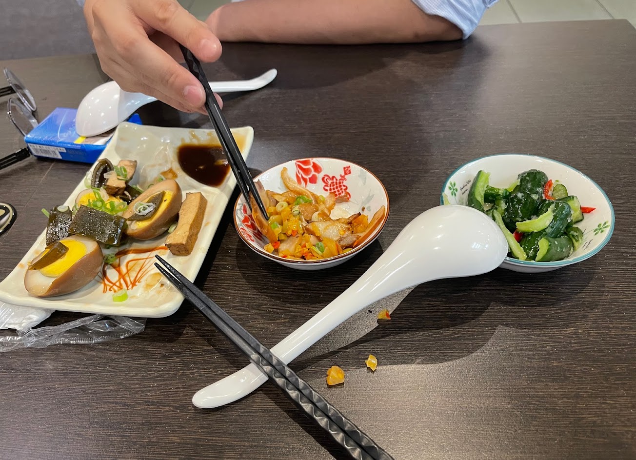 聽聞有好吃牛肉麵開 逛完駁二順路前去品嚐 老闆對自己的產品很要求 發現今天的醃黃瓜水準不夠 直接整盤倒掉