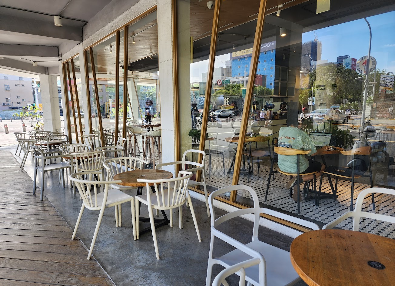 所以,這家咖啡館就在拐角處。有室內空調和室外空調。這個地方很寬敞,乾淨舒適。在這裡點一杯飲料還行,熱焦糖瑪奇朵120元,冰奶茶110元。飲料的價格相當實惠。至於蛋糕,價格不同。我點的蛋糕,芋頭可麗餅要155新台幣。這家咖啡館也靠近 MRT Park Central。所以,如果你無聊去哪裡,試試這家咖啡館,我保證你不會後悔