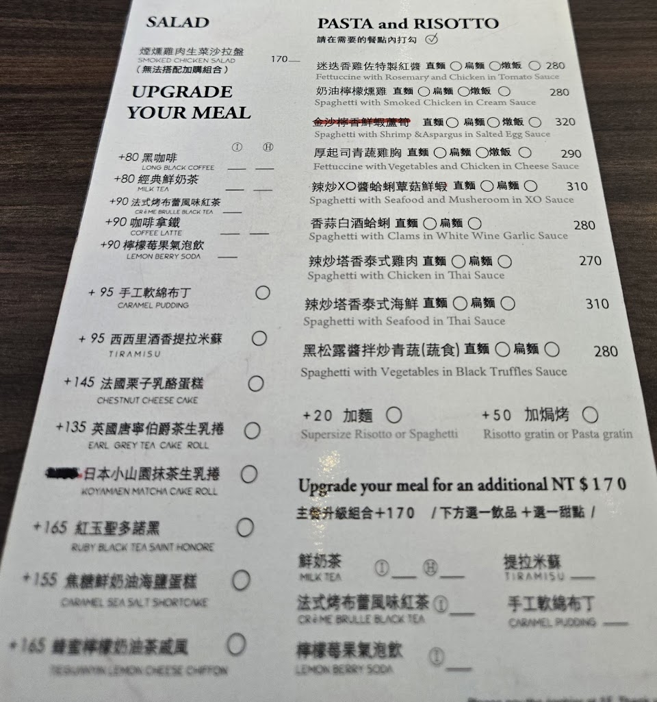 點了義大利麵跟燉飯覺得很普通,義大利麵上面的海苔沒有加分效果,覺得有點多餘,生菜也是。