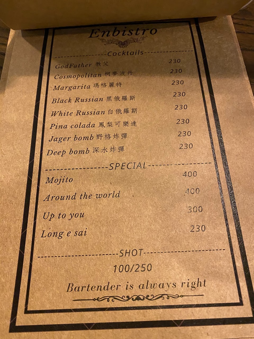 2024最新在地推薦餐廳的菜單_隱 Bistro的菜單、圖片