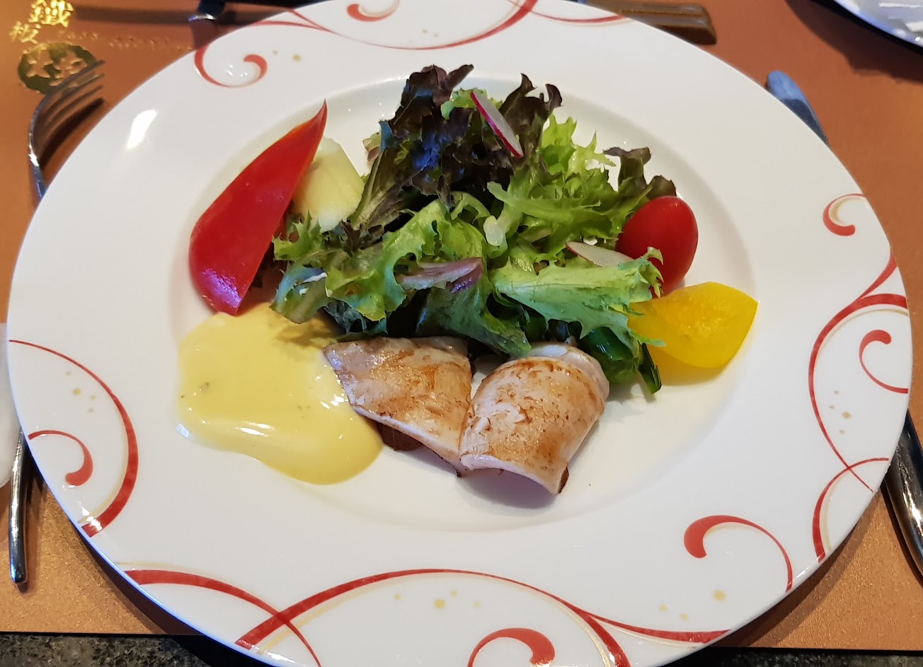 前菜的海鹽可頌不錯吃但是沒有奶油可以抹好單調…… 小卷沙拉,小卷現煎給你看,沙拉的菜還算新鮮 ,沙拉醬調製的還不錯。 甜點是法式煎餅捲香蕉出有時候是銅鑼燒不過出師人還不錯願意把香蕉換成其他水果 上面有一個水餅…可惜的是沒有味道…… 炒飯要加辣比較好吃一些 可能是商業午餐吧東西料理的菜色比較少選擇