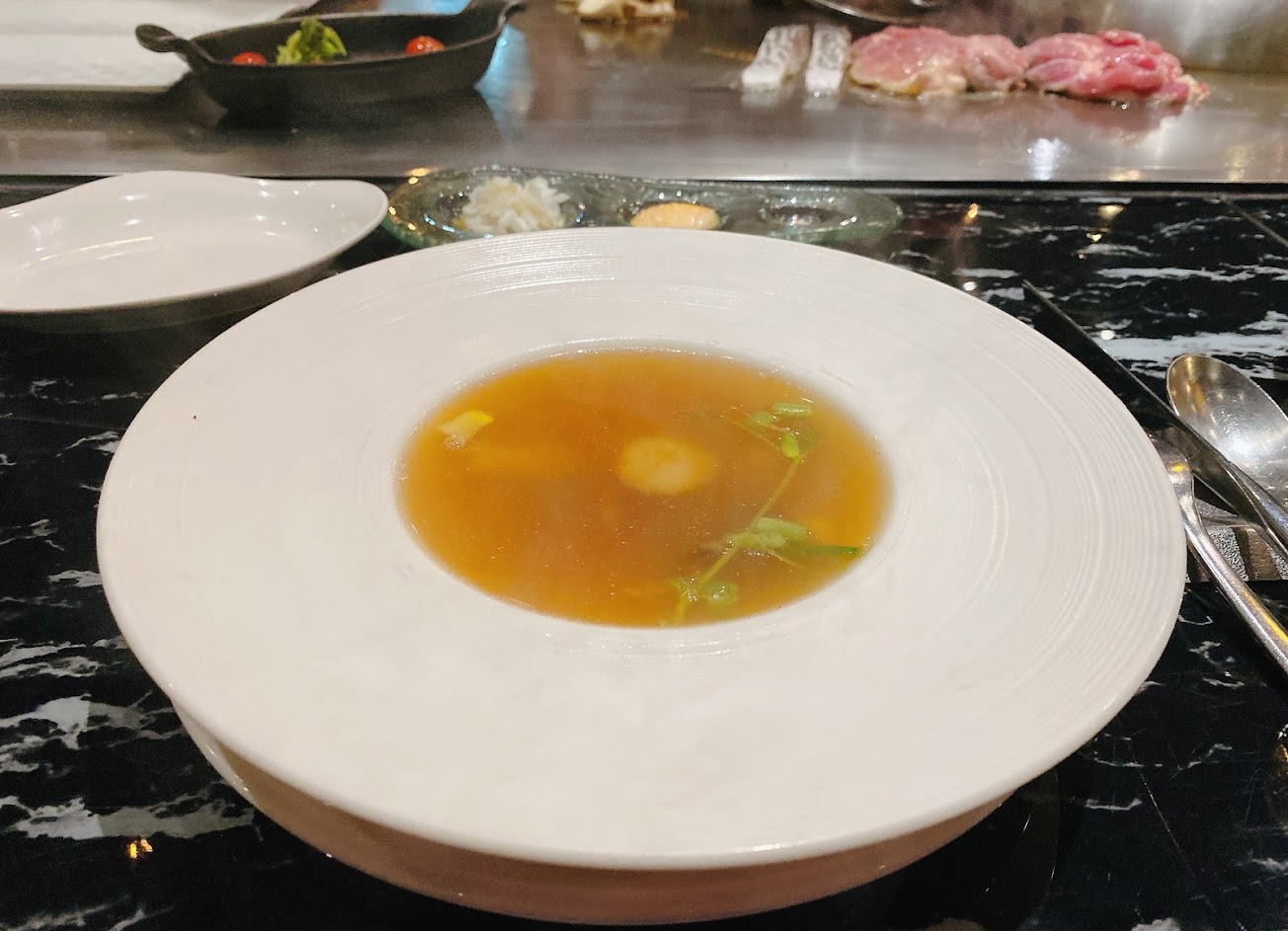 麵包鬆軟可口,洋蔥濃湯十分好喝有五星級的牛排館的水準,櫻花蝦炒飯也非常美味,服務人員前來詢問續碗,讓我們吃飯吃的很飽…但是…我們這桌的兩位主廚(年輕一男一女)所料理的主餐:松露牛小排五分熟卻完全焦掉,朋友點的牛肉捲像是在嚼牛肉乾一樣硬,加點的龍蝦一開始送來明顯還未熟(太生了,蝦肉有點透明),請女主廚再加熱感覺她不太情願,就放在一旁也不理它,是經過一段時間後我們問她說會不會太熟了,她也不太想理會我們,還是由另外一位男主廚夾給我們的(幸好有加熱之後龍蝦肉真的比較鮮甜好吃了)。比起來男主廚的服務態度還比較好一點。