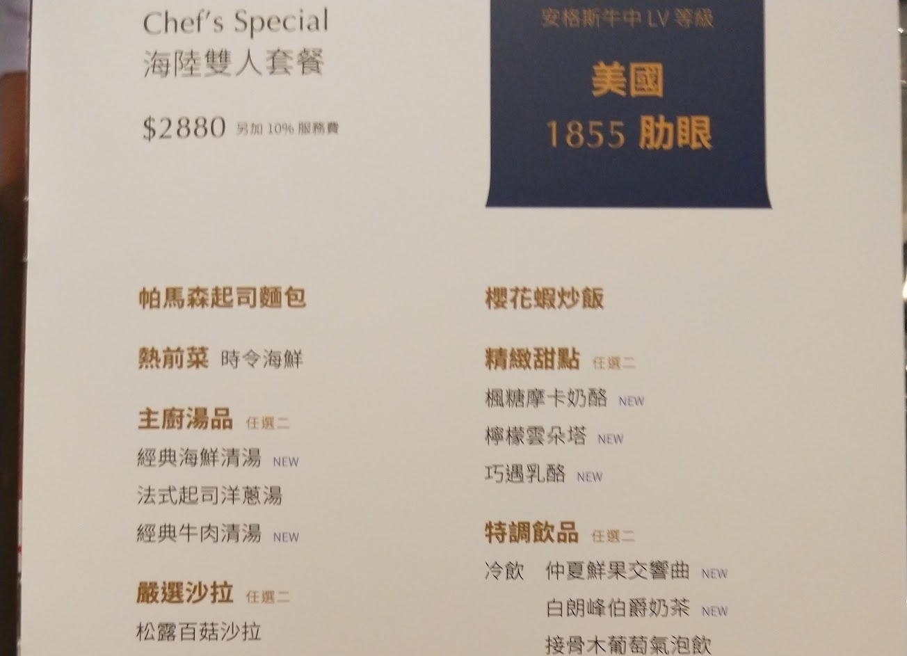 服務人員非常棒 一個人要服務十幾個客人 非常不簡單 小羊排非常嫩又沒羶味好好吃 松露百菇沙拉跟經典海鮮清湯必推 白色情人節點兩客套餐又送一隻龍蝦 今天的廚師料理非常到位 每樣餐點都做的好好吃 小小孩有免費的麵包櫻花蝦炒飯 玉米濃湯跟飲料 這樣cp值高的餐廳 不推不行啊啊啊⋯⋯