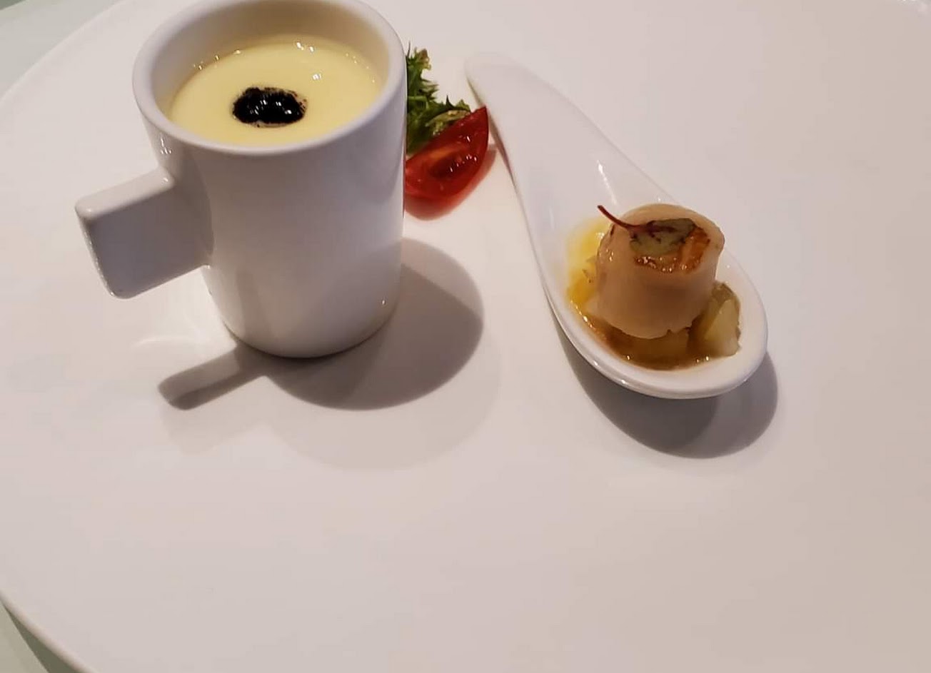 海鮮清湯,湯是清澈的味道也好,相比之下海鮮就普通了點。松露起司洋蔥湯,洋蔥味滿濃的,打了不錯的基礎,起司為湯品增添奶香但下手有點重,松露則把整體的豐厚度往上提,偏膩。