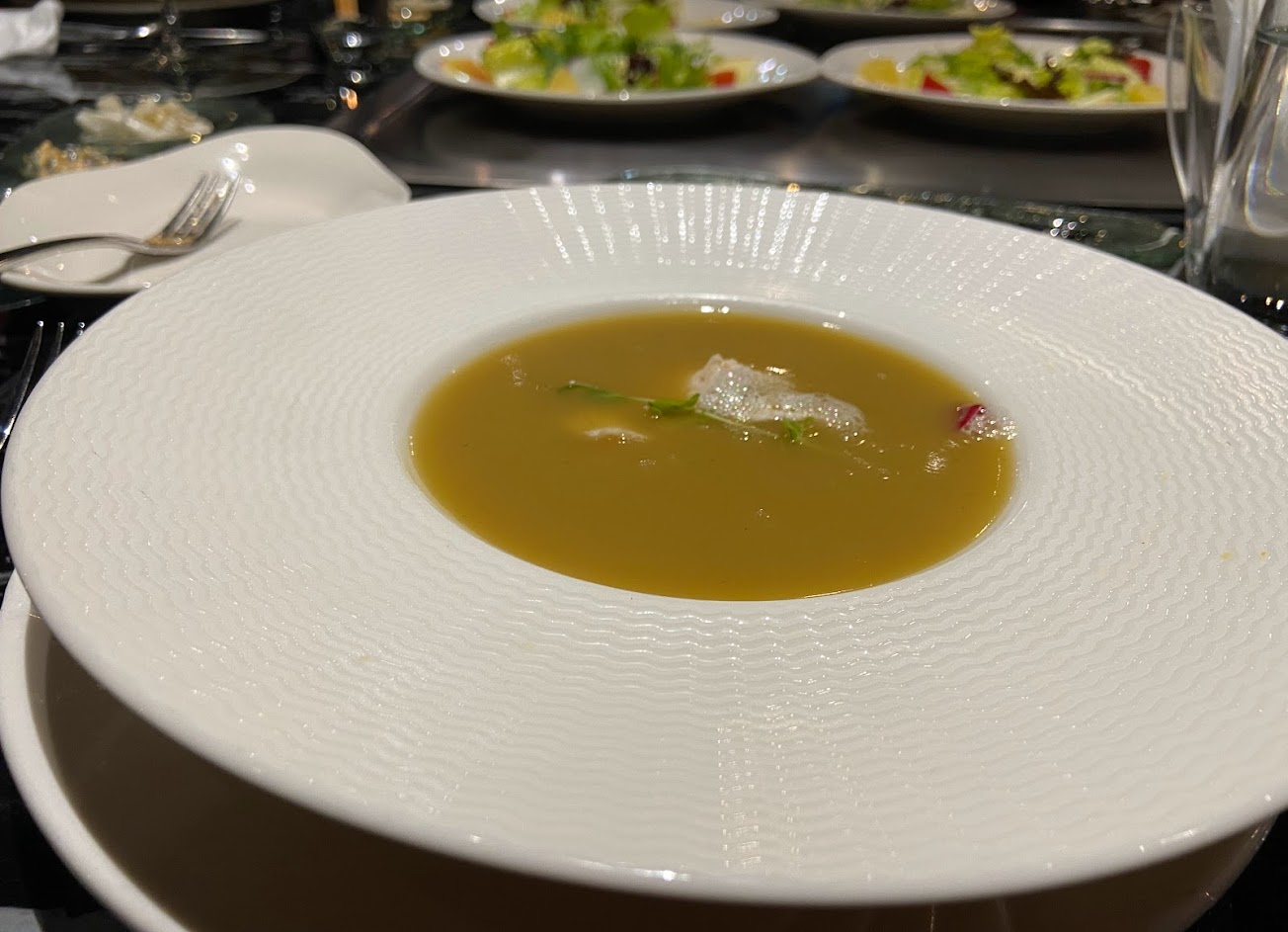 接著是點了比較少機會吃到的栗子雞肉濃湯,雞肉應該是用舒肥雞,口感很滑嫩順口,不過配上栗子濃湯後,我只能說好像有點特別…但也沒有喜歡的感覺啦 哈哈