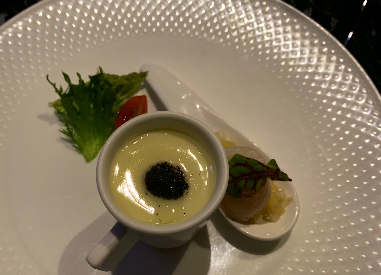 單點的蝦子干貝跟熱前菜。只差在擺盤跟多個鮑魚?,干貝好吃但蝦子普通沒有蝦子的鮮甜味!