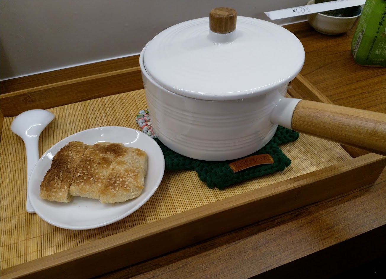 充滿文青氣息的雞湯店,我點的這鍋菜單介紹湯頭標示濃 原本擔心口味太重,但其實極為清爽不膩。用餐時間人多 但店員招呼還是相當周到?第一次看到雞湯配燒餅 非常有趣!這次沒仔細看菜單 下次要來好好研究ㄧ下? …