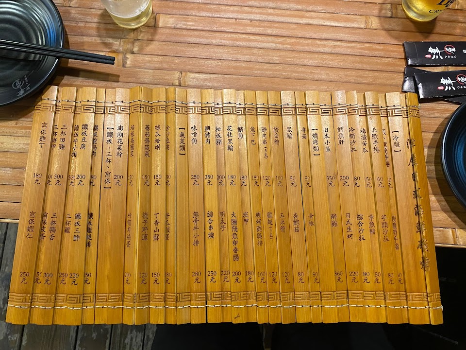 位在前金國小對面,鄰近國賓飯店和愛河,我們有20多人一起到這裏聚餐,菜單是很特別竹製的聖旨造型,餐點非常多樣化,海鮮、熱炒、燒烤、炸物、手捲,現點現烤現作,可以點烤肉串、魚下巴和海鮮炸物,都很美味,最特別的是一道~男人的加油站,是用生蠔+雞南佛+生菜+哇沙比沙拉的手捲,令眾人驚豔!烏梅洛神好喝,熱炒搭啤酒最讚了!海鮮櫃裡有當天的海產,可以詢問店家料理方式哦!二樓有冷氣和包廂(10人4000元),一樓沒有禁煙是開放空間! 服務 內用 餐點類型 晚餐 平均每人消費金額 $600-800