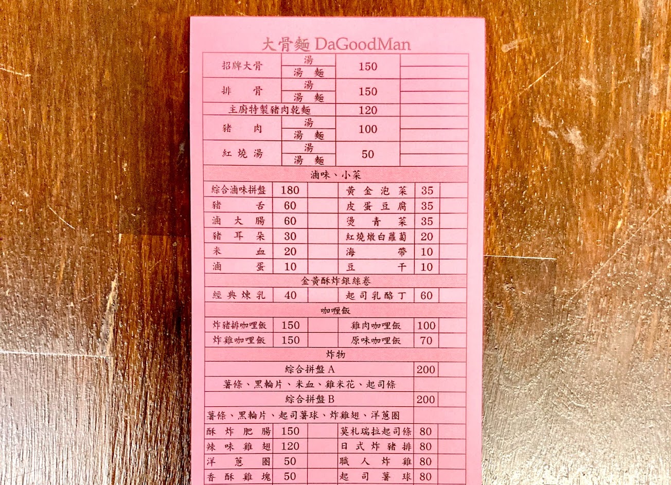 聽老闆說大骨麵又叫Dagoodman,老闆很親切好聊天。大骨超級大而且肉入口即化,還有貼心的準備手套,不怕手油油,也可以豪邁地用啃的?,吃得到熬製的甘醇,湯頭和麵條好喝很入味!大推~~???????