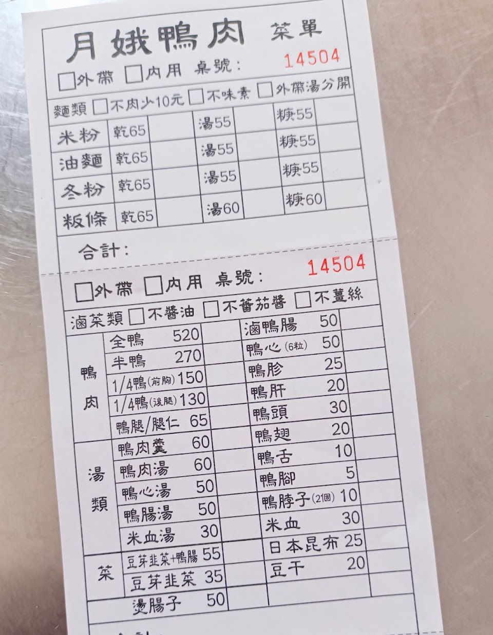 2024最新在地推薦餐廳的菜單_月娥鴨肉(原老謝鴨肉)的菜單、圖片